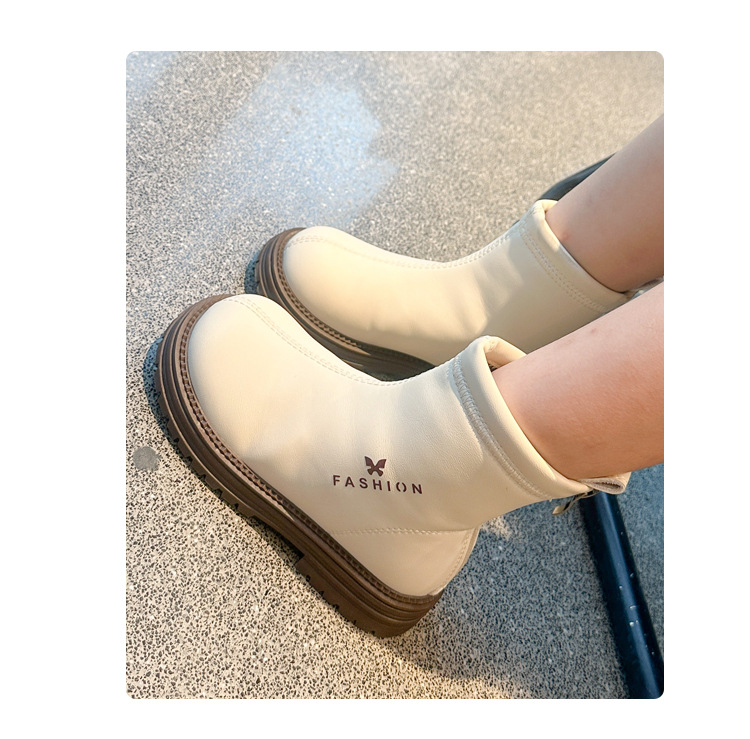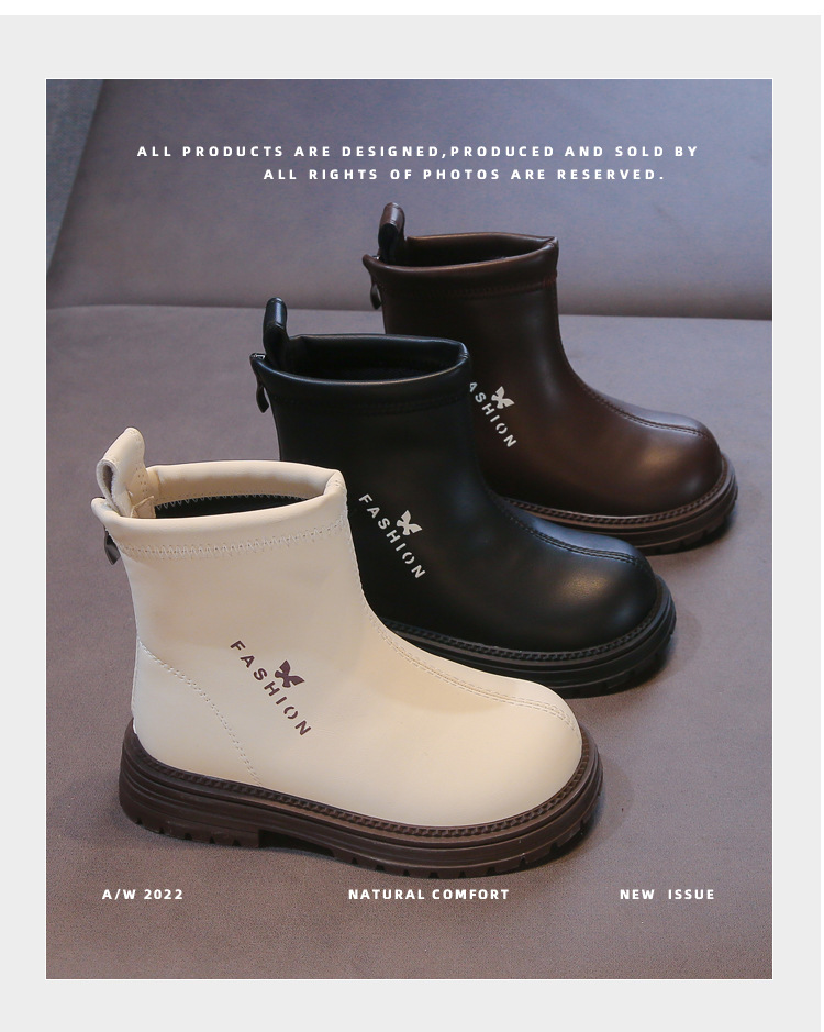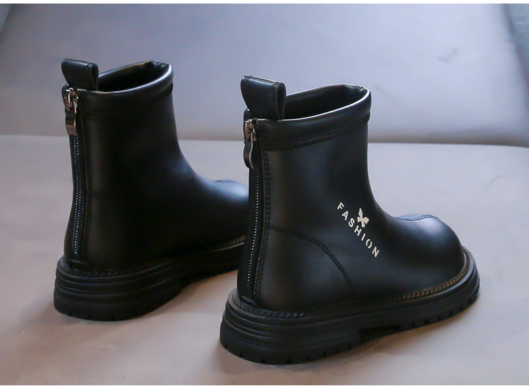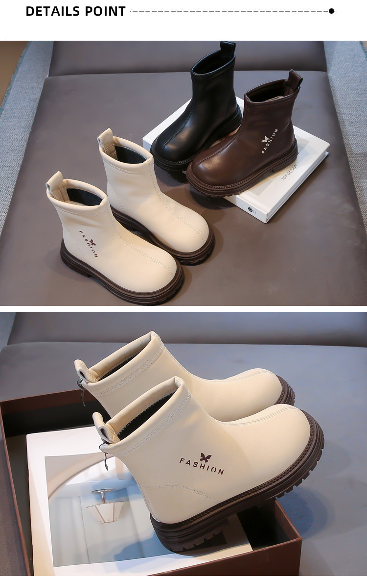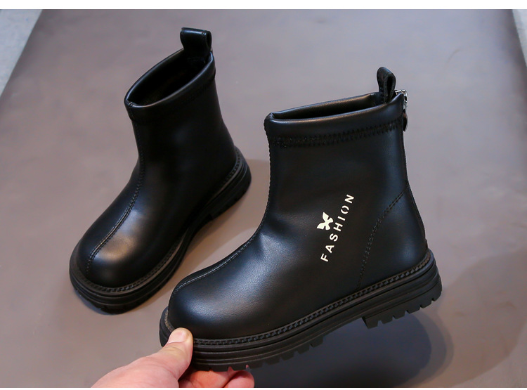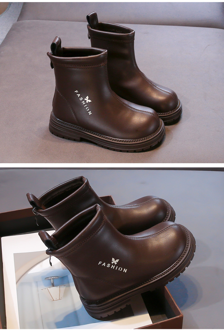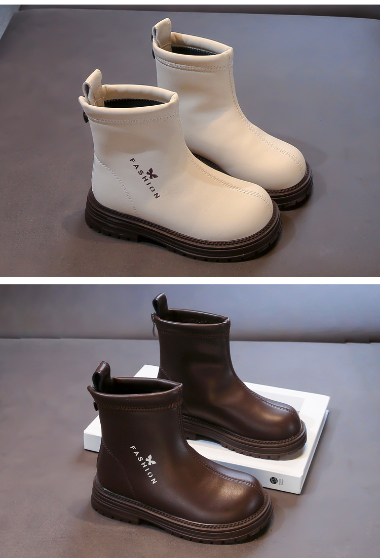 어린이 가죽 부츠 2025 봄 신상 뒷지퍼 부드러운 밑창 미끄럼 방지 여아용 중간 높이 패션 마틴 부츠스토어 가기