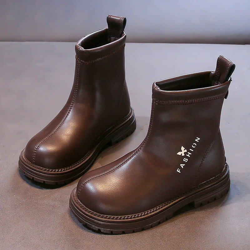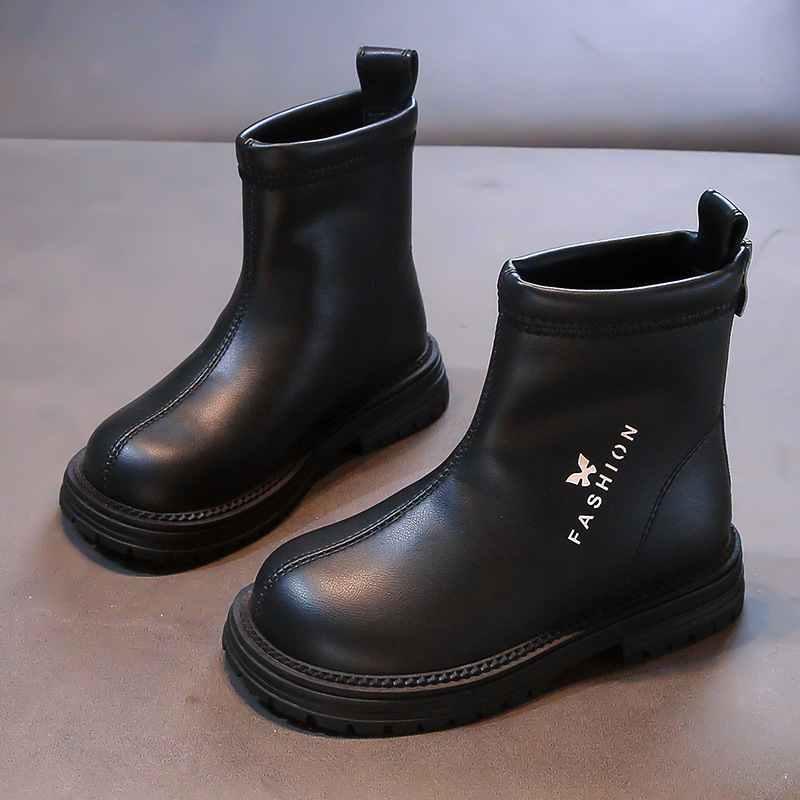 어린이 가죽 부츠 2025 봄 신상 뒷지퍼 부드러운 밑창 미끄럼 방지 여아용 중간 높이 패션 마틴 부츠