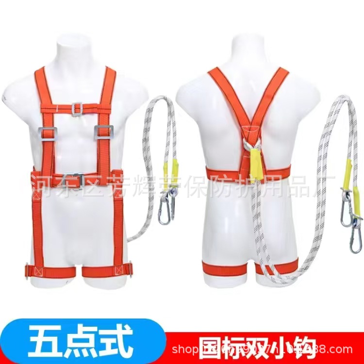 국가 표준 5 점 전신 안전 벨트 더블 대형 후크 3 m 유럽식 벨트 버퍼 낙하 방지 안전 벨트 공중 작업스토어 가기