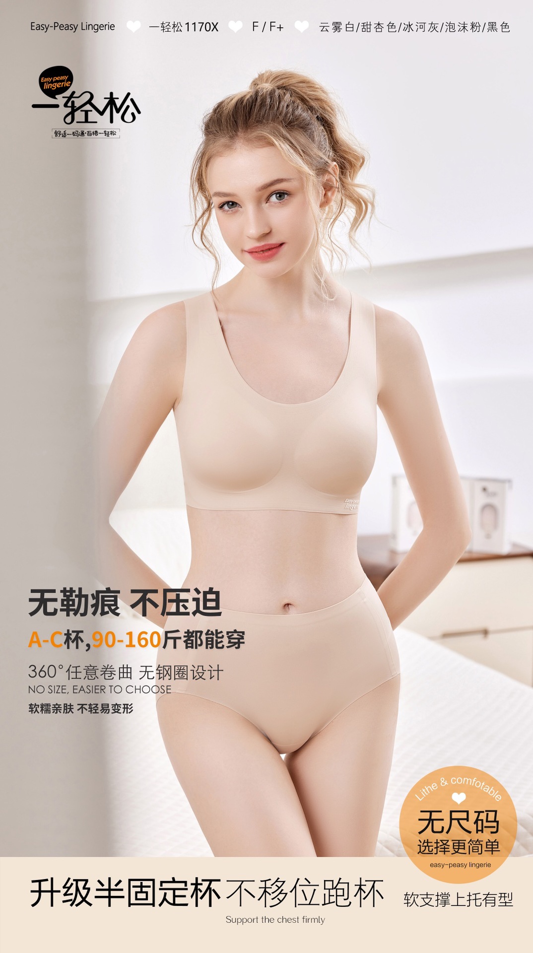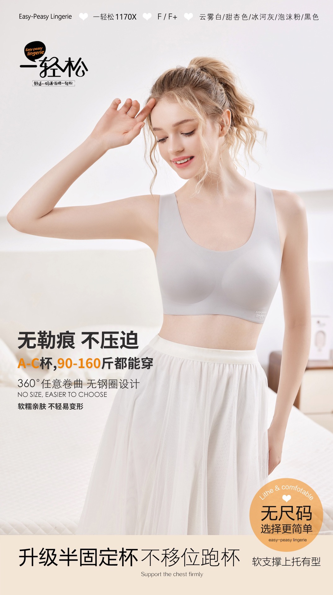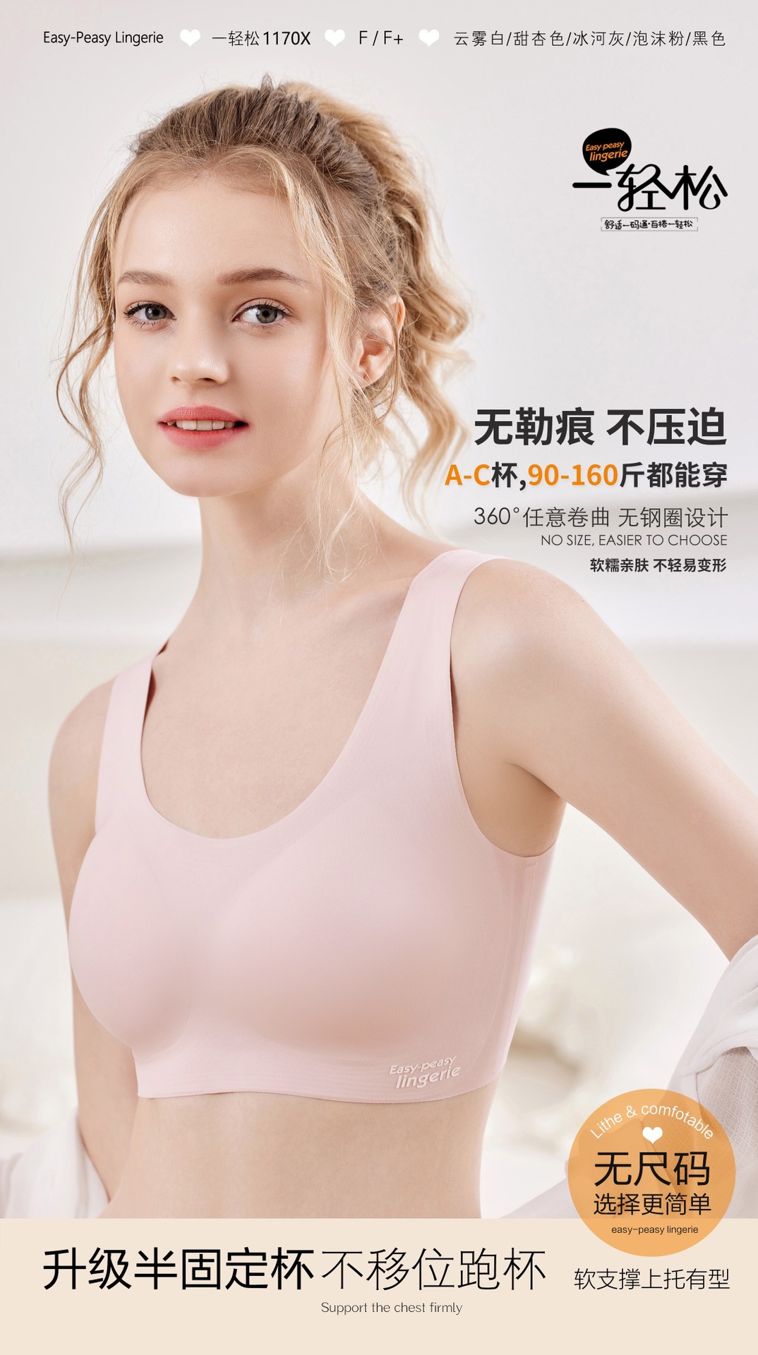 편안하고 사이즈가 없는 1170 통기성 얇은 컵, 와이어 없음, 편안한 스포츠 아름다운 등 수면 라텍스 유지 관리 속옷스토어 가기