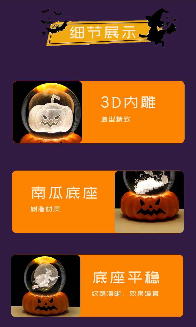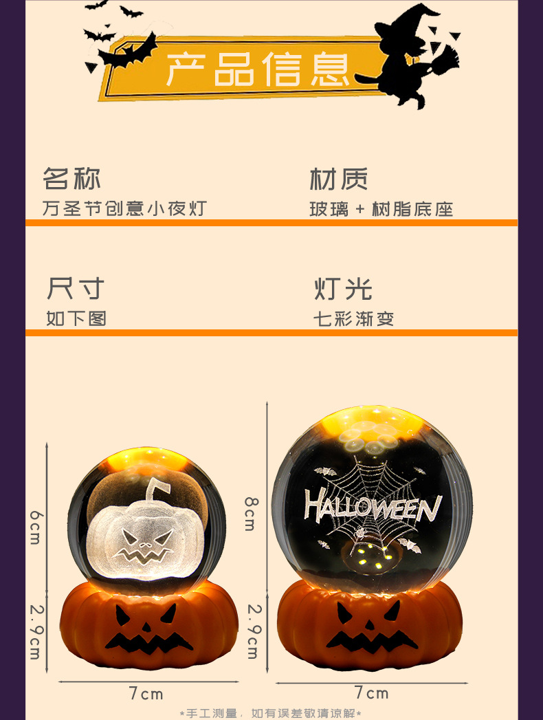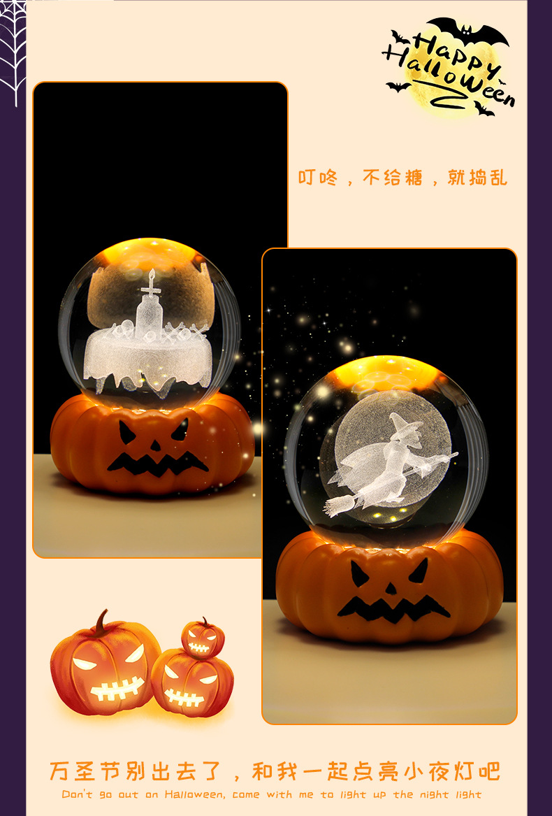 국경 간 할로윈 호박 야간 데스크톱 유리 공 장식품 호박 등불 침실 장식 파티 선물 배열