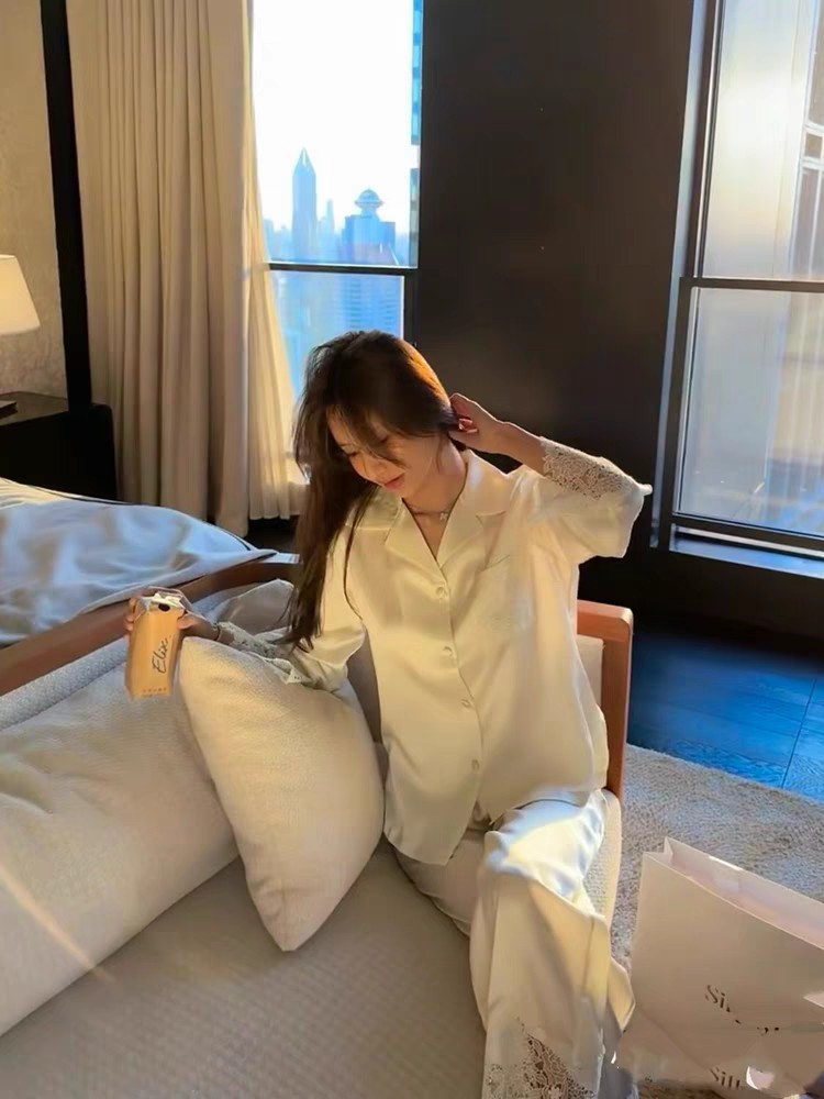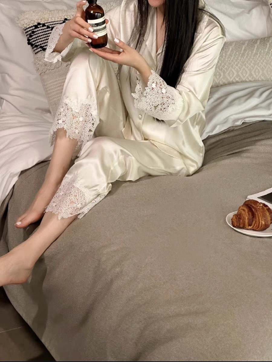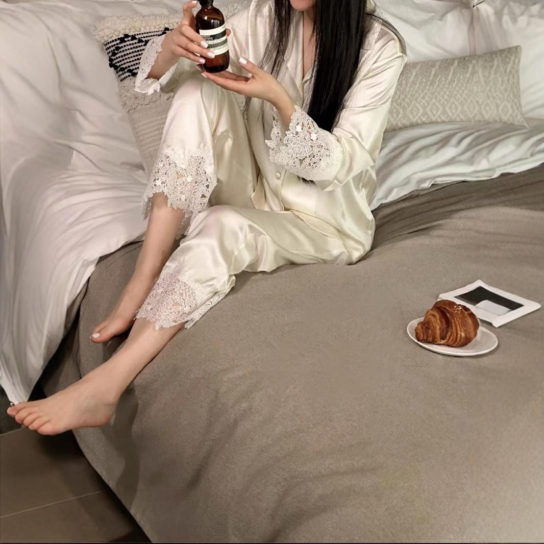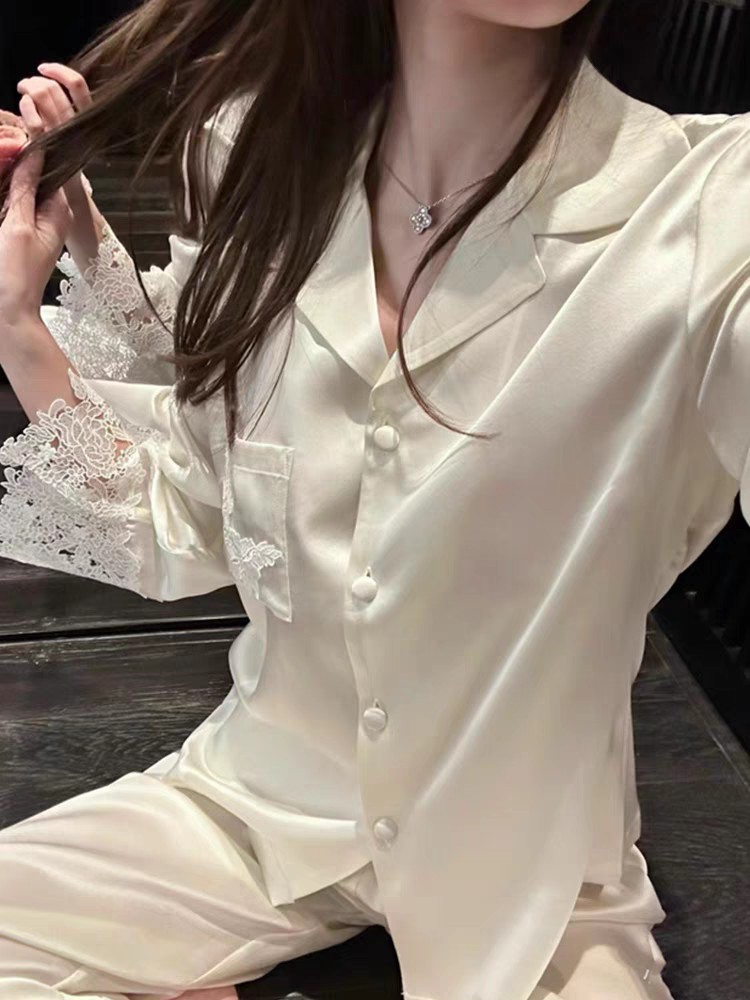 2025 새로운 초가을 달빛 흰색 고급 프랑스 긴팔 기질 레이스 홈웨어 여성 럭셔리 오뜨 꾸뛰르스토어 가기
