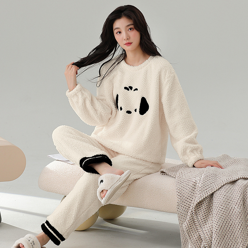 2024 옷깃 긴 소매 잠옷 여성의 가을 만화 면 가슴 패드 홈 옷은 봄, 가을, 겨울 세트 착용 할 수 있습니다스토어 가기