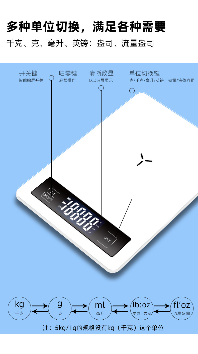 주방 스케일 베이킹 스케일 1g 스케일 가정용 전자 스케일 미니 커피 과일 식품 스케일 크로스 국경 5kg 도매스토어 가기