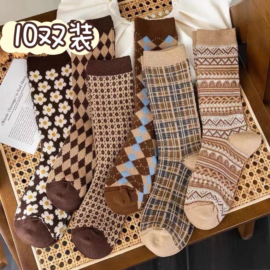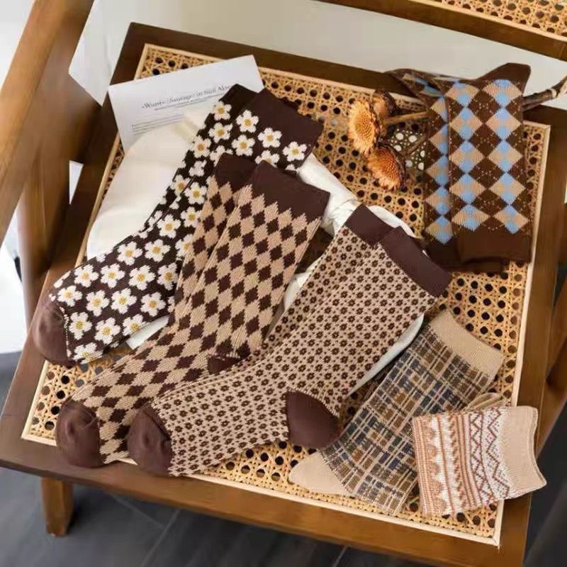 빈티지 일본 양말 니트 자카드 미드 튜브 양말 멀티 컬러 스타킹 여성 발목 땀-위킹 빈티지 꽃 양말스토어 가기