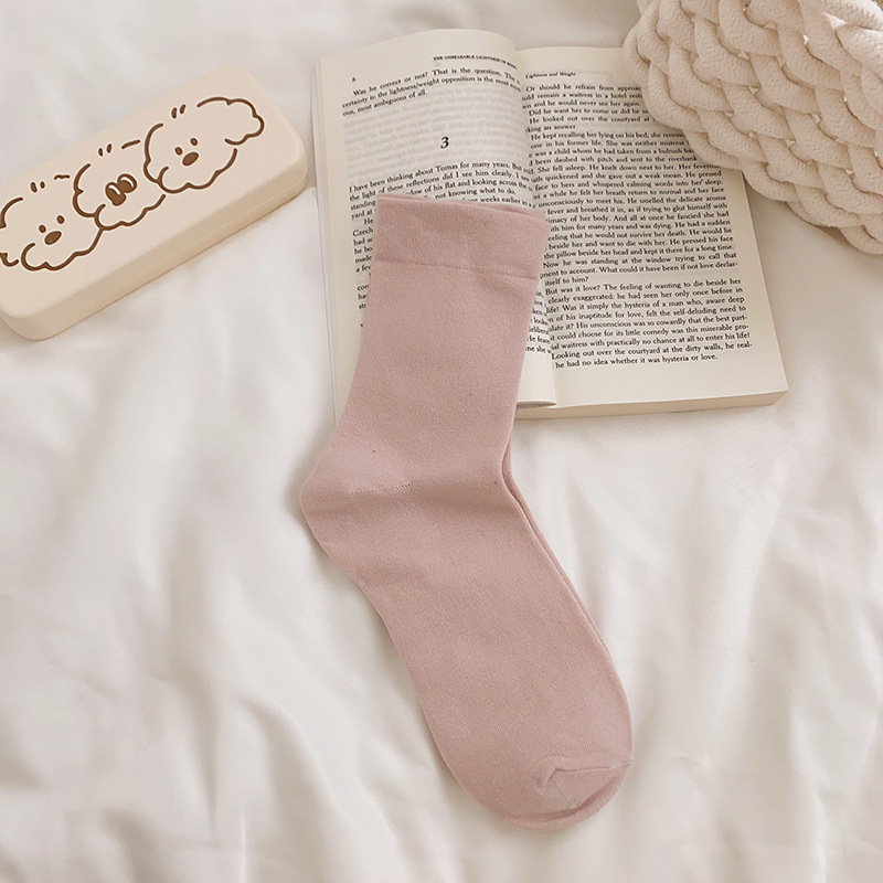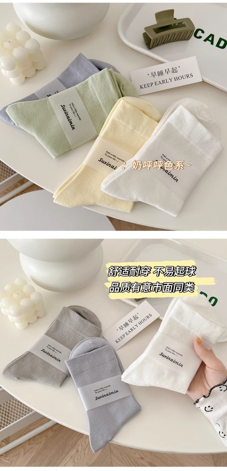 라이트 그린 크림 컬러 양말 여성용 일본 스타일 Ins 트렌디 한 귀여운 단색 여성용 미드 샤인 양말 봄 여름 가을 느슨한 달 양말스토어 가기