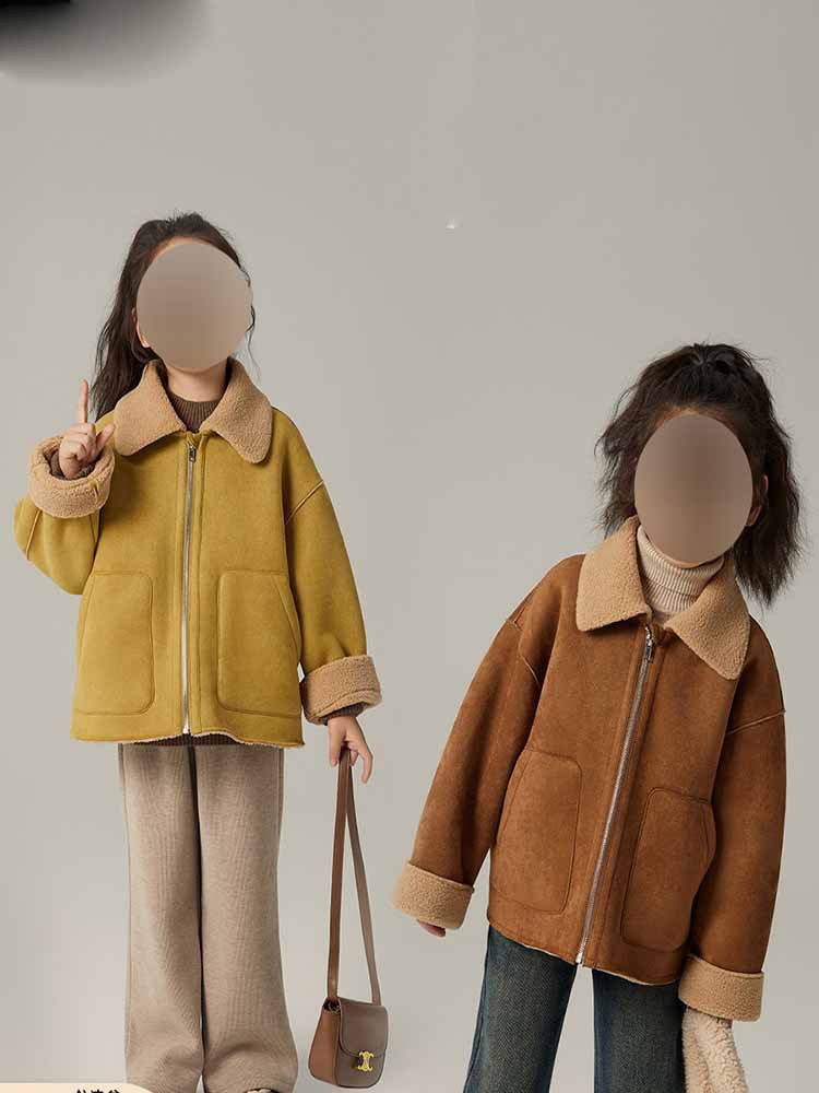 여자 마오 코트 가을과 겨울 새로운 한국 버전의 외국 스타일 기모 재킷 캐주얼 코트 어린이 헤어 세대