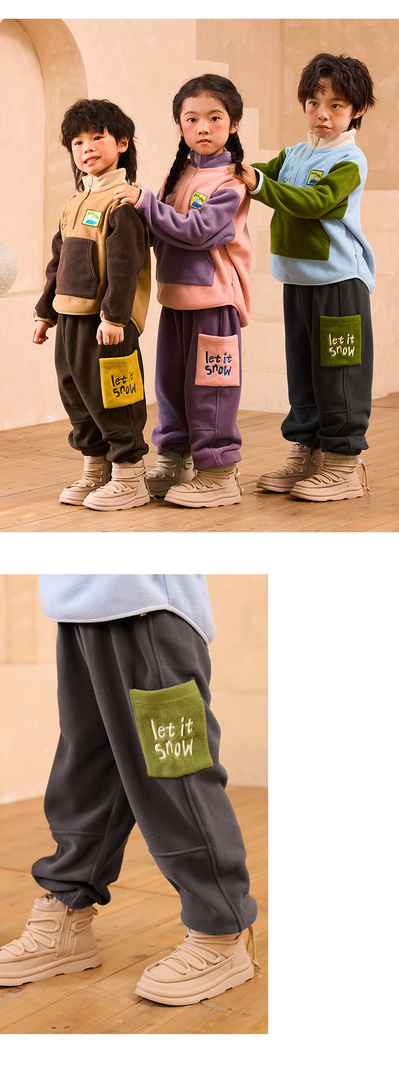 미니 존 어린이 기모 바지 겨울 정전기 방지 극지 양털 어린이 캐주얼 바지 따뜻한 발가락스토어 가기