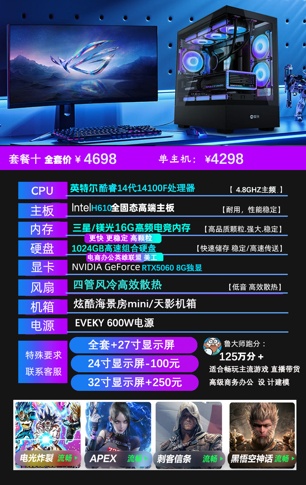 • 패키지 4: 단일 호스트(인터넷/사무/리그 오브 레전드/아트 디자인)