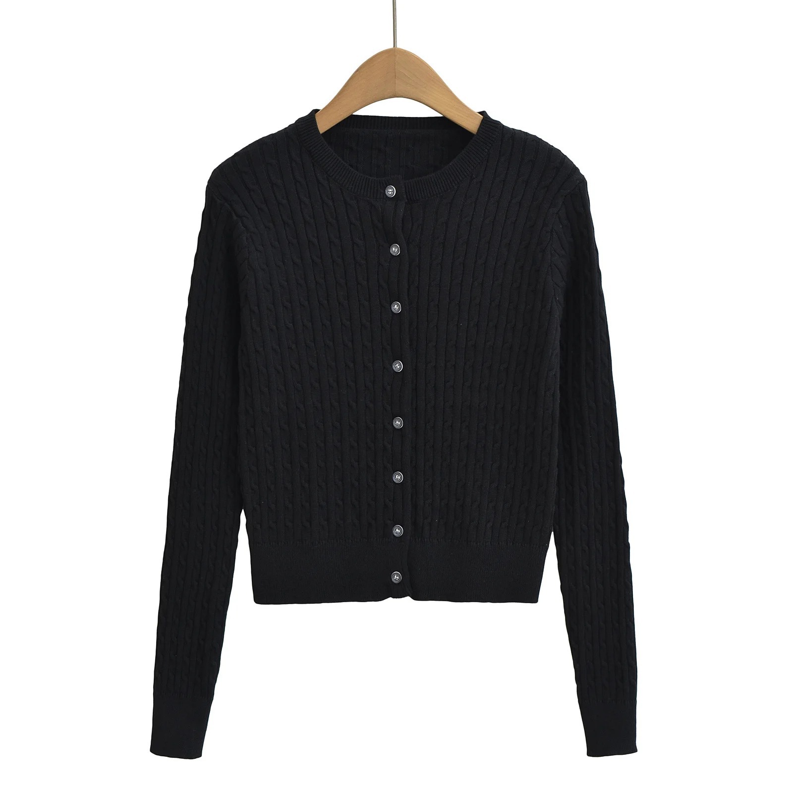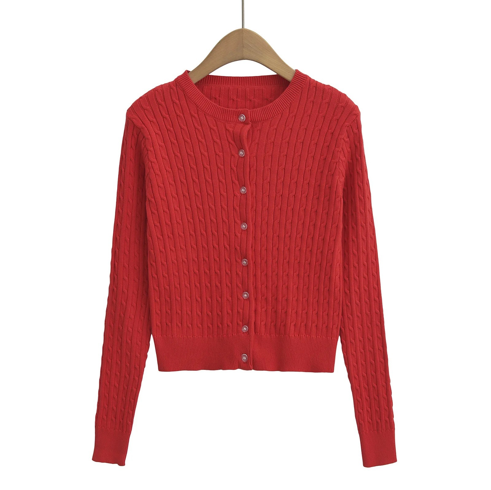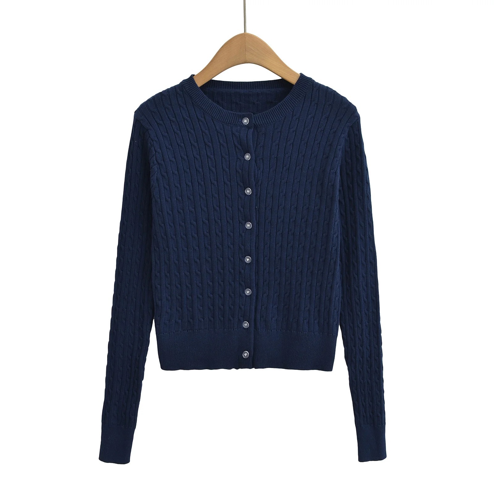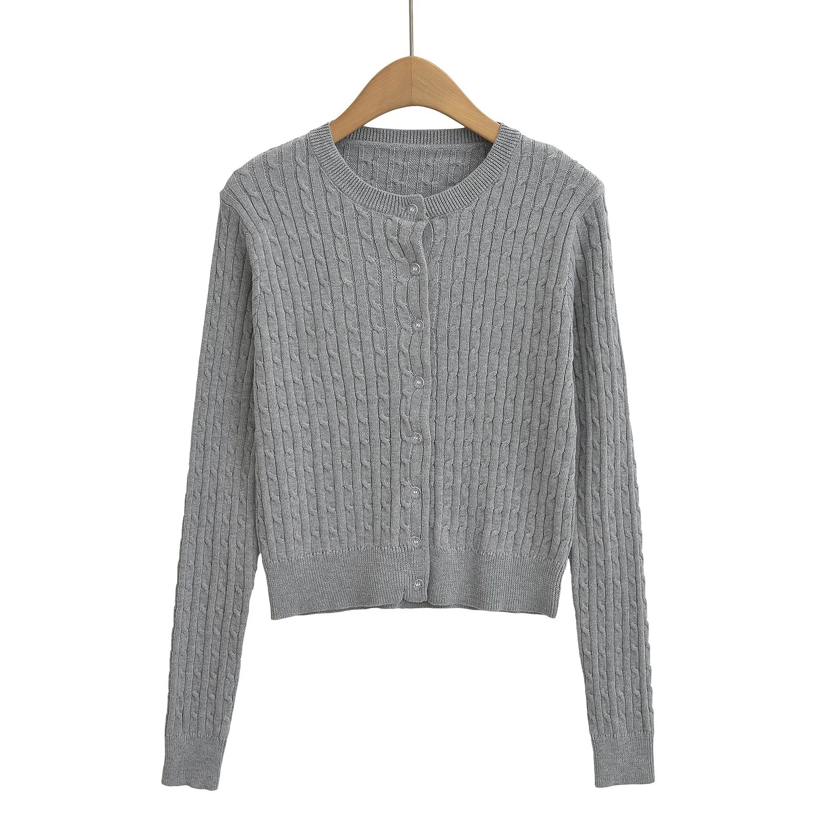 미국 라운드 넥 트위스트 스웨터 니트 카디건 재킷 여성 가을 새로운 슬림 핏 아우터 짧은 긴팔 탑스토어 가기