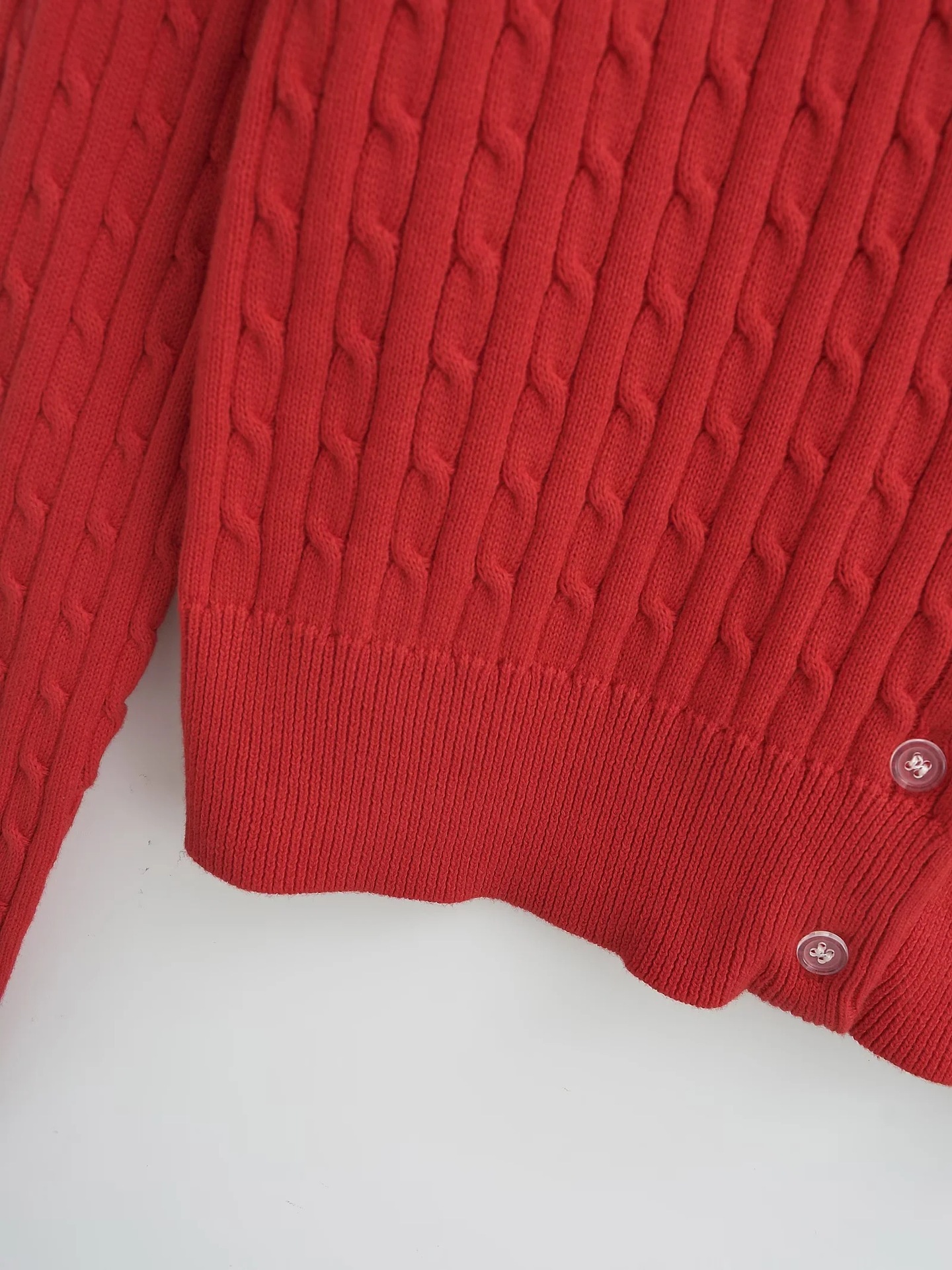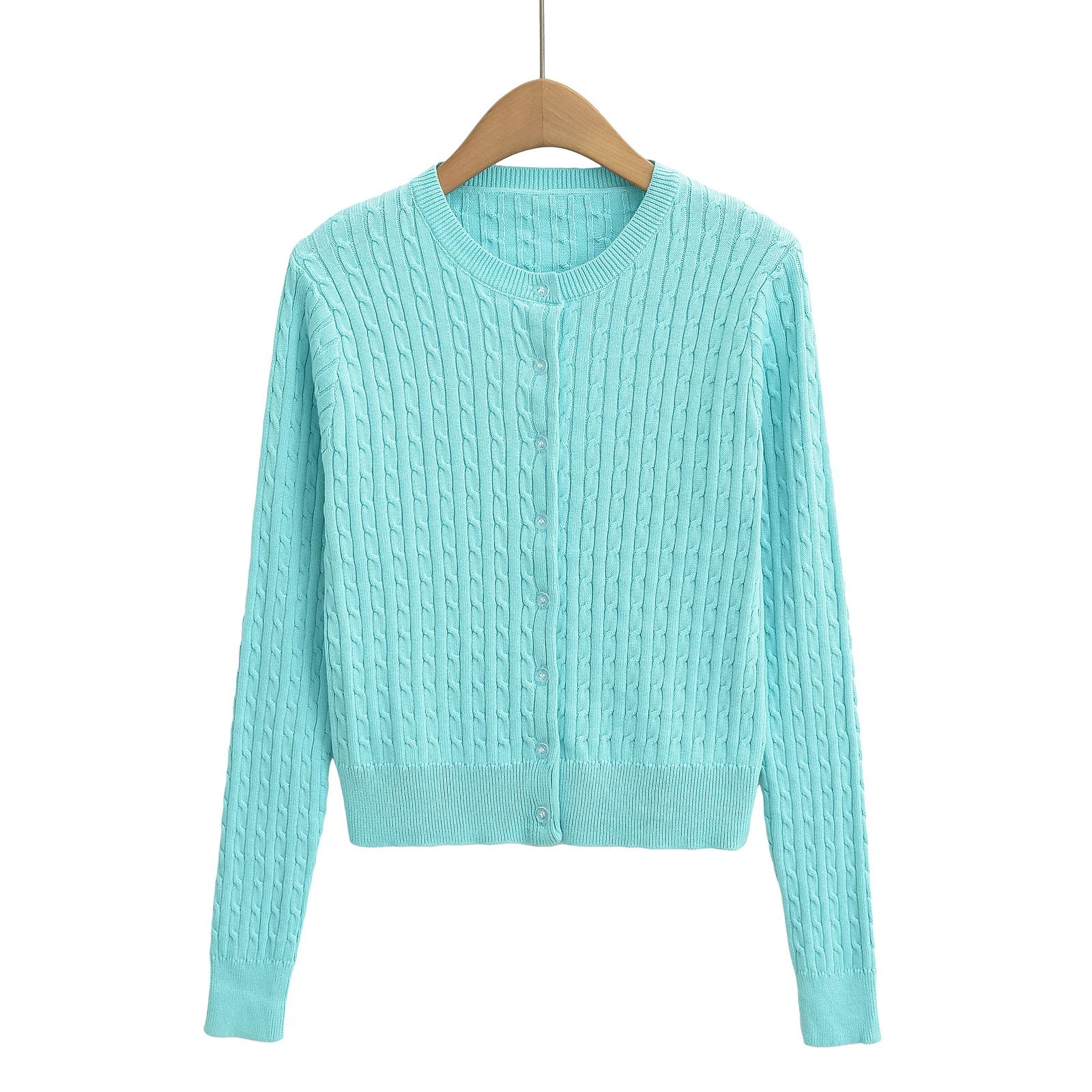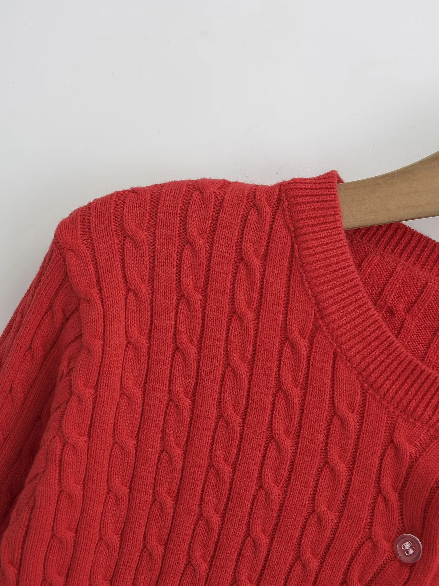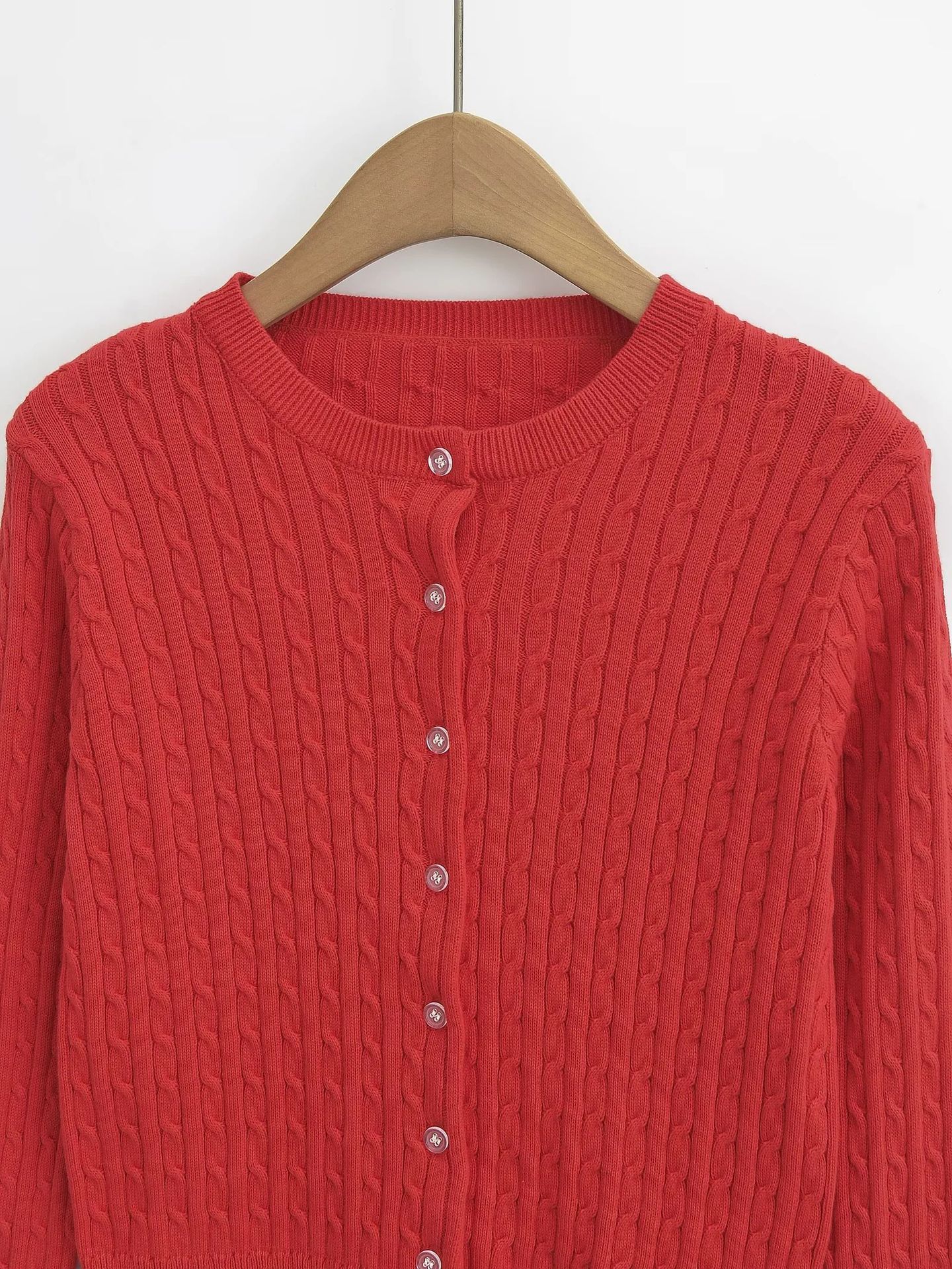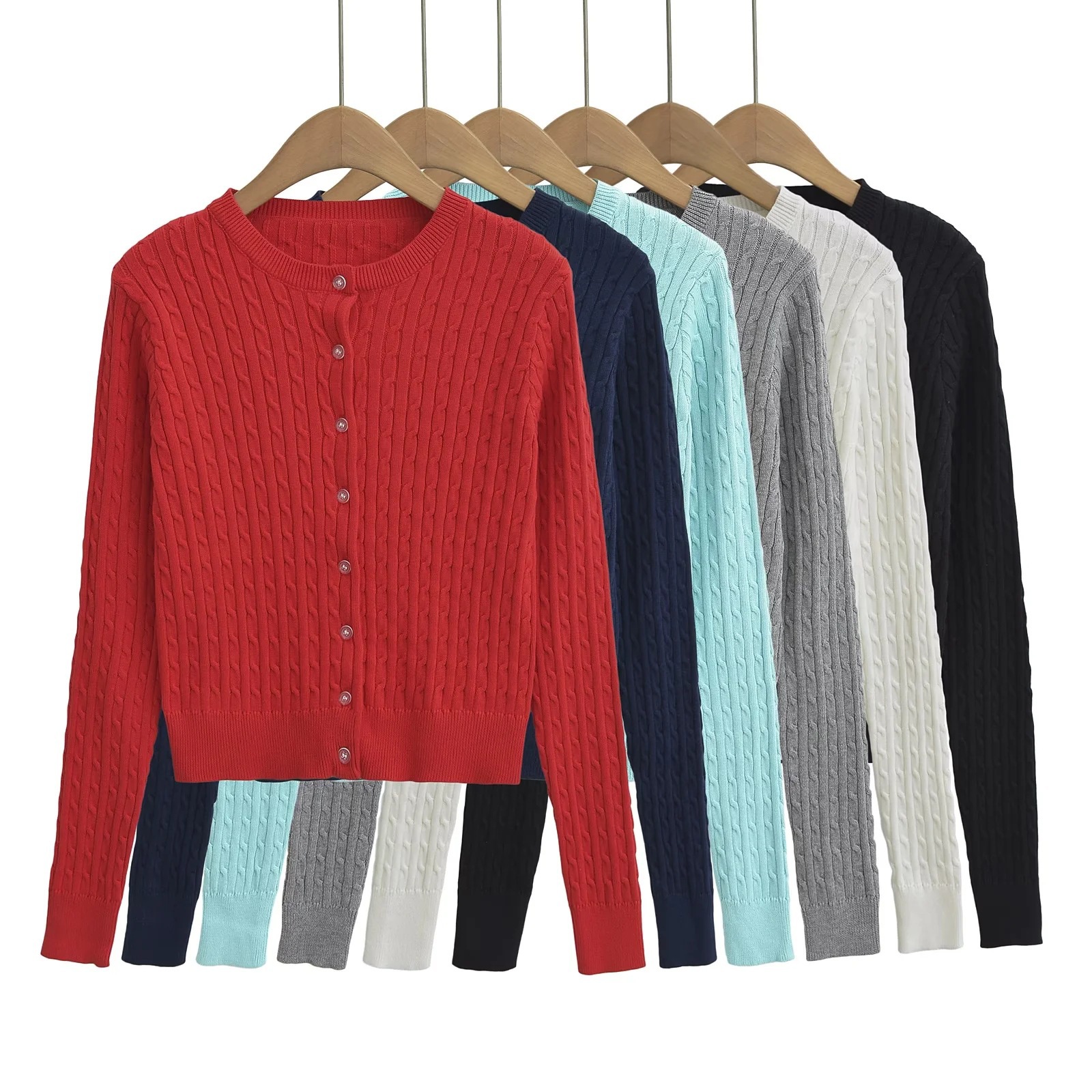 미국 라운드 넥 트위스트 스웨터 니트 카디건 재킷 여성 가을 새로운 슬림 핏 아우터 짧은 긴팔 탑스토어 가기
