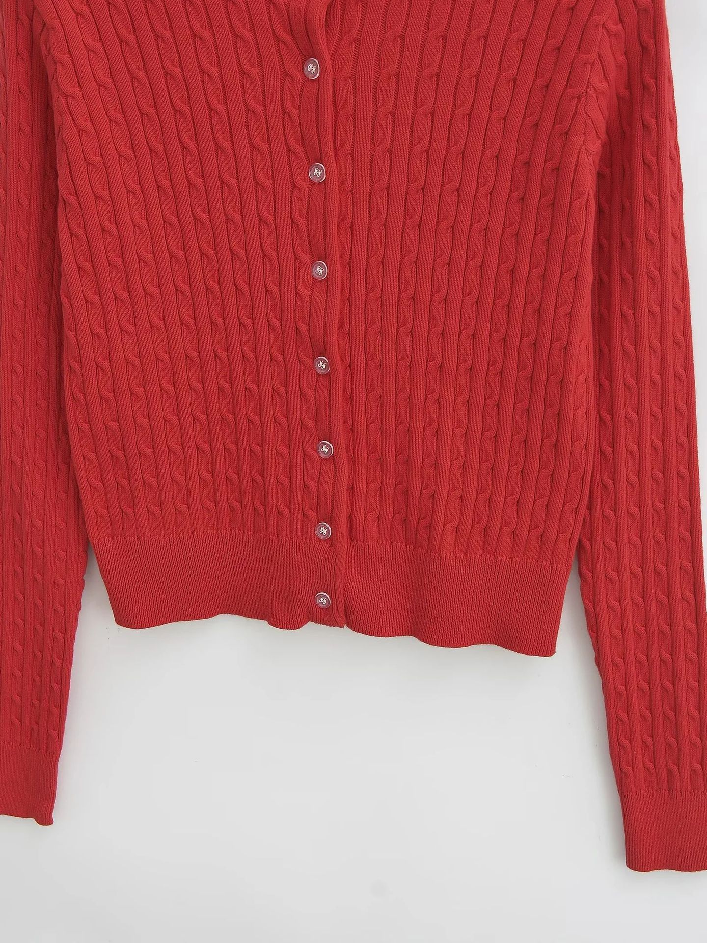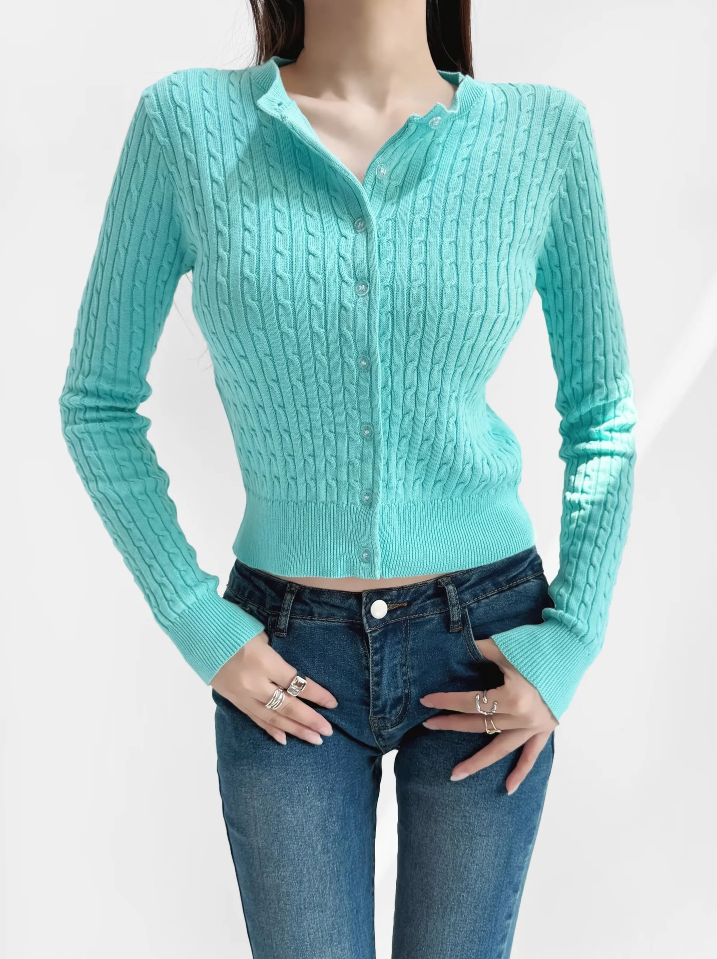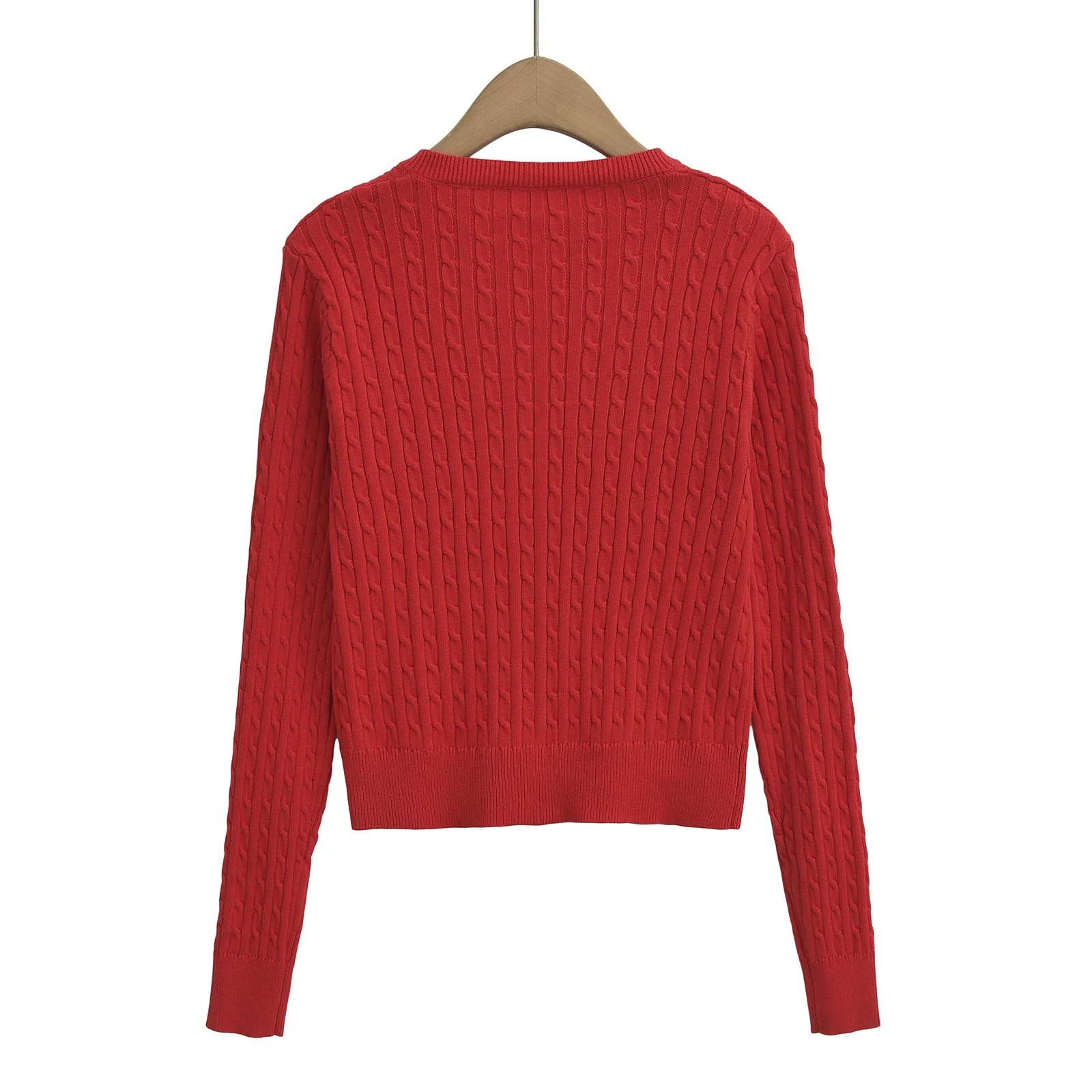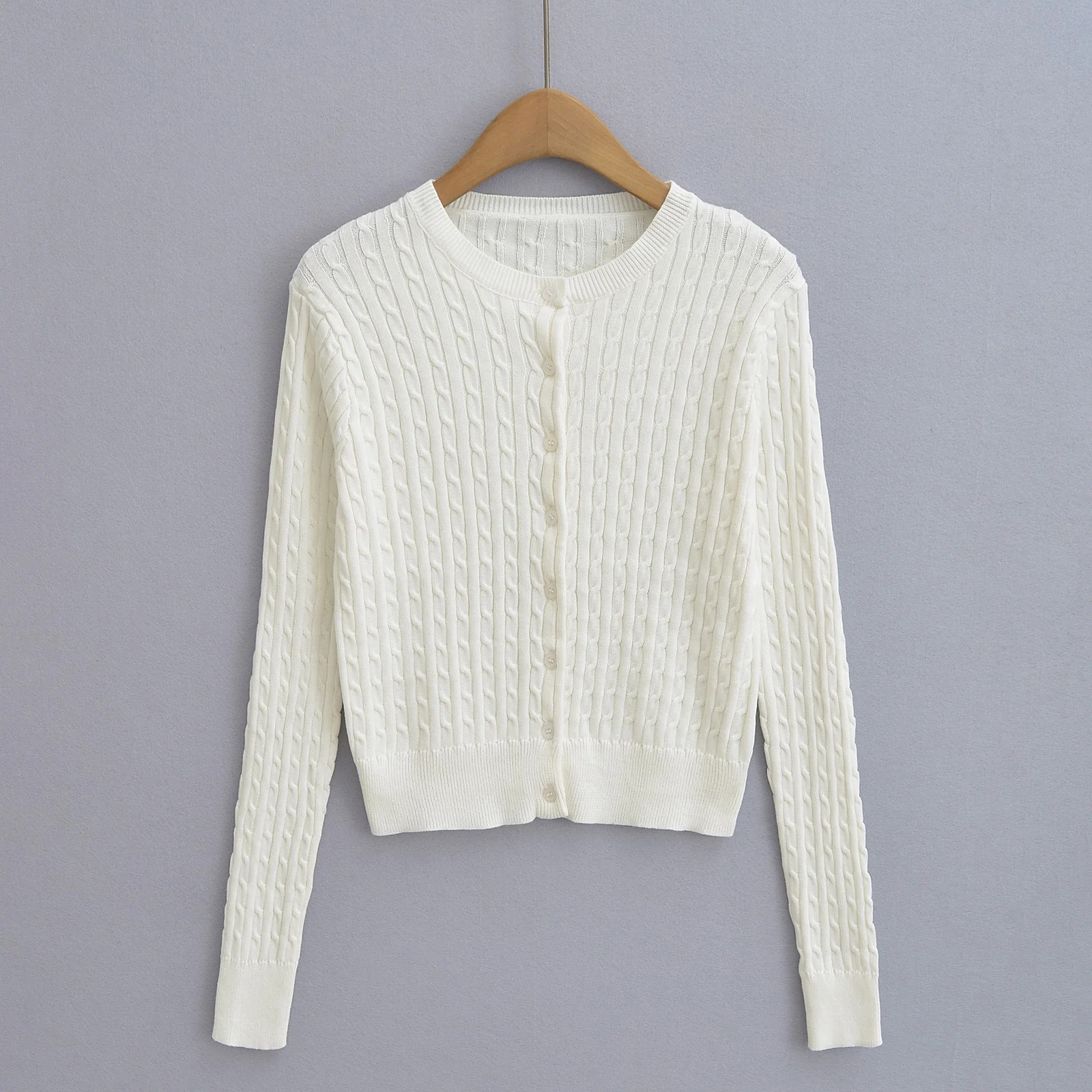 미국 라운드 넥 트위스트 스웨터 니트 카디건 재킷 여성 가을 새로운 슬림 핏 아우터 짧은 긴팔 탑