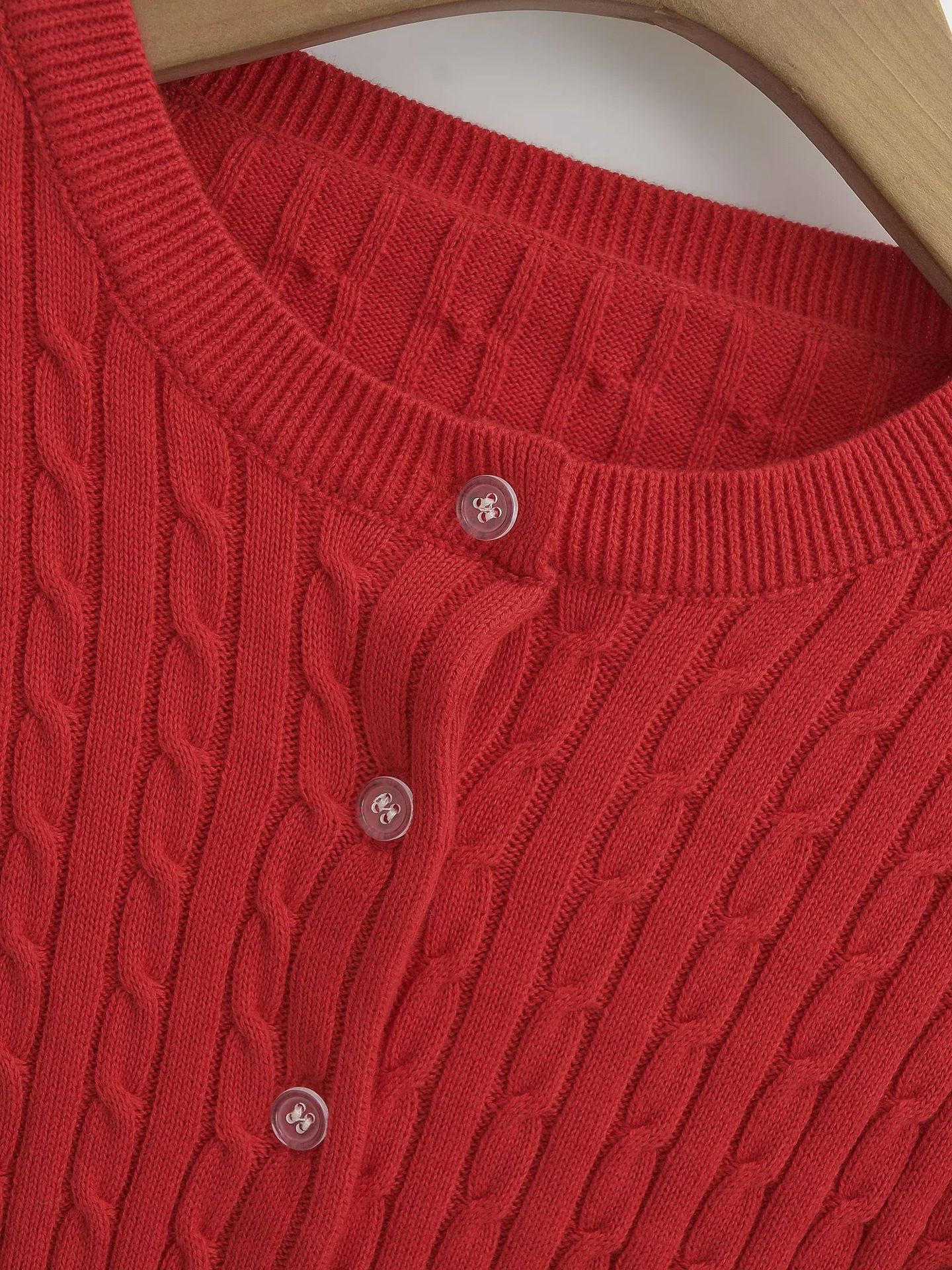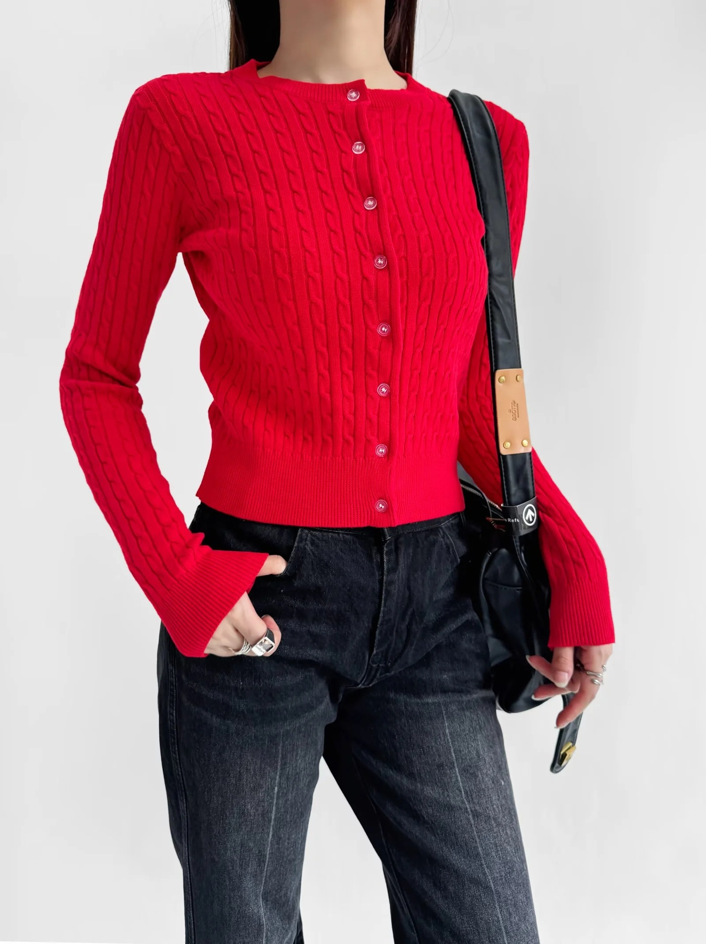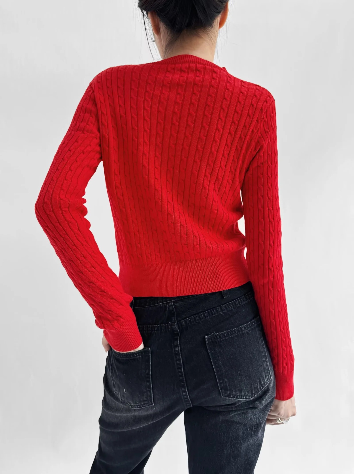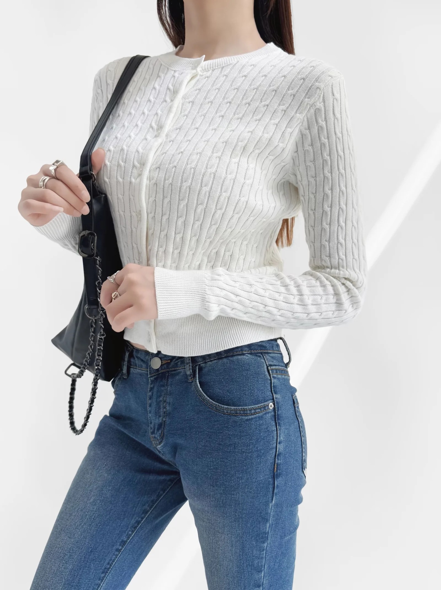 미국 라운드 넥 트위스트 스웨터 니트 카디건 재킷 여성 가을 새로운 슬림 핏 아우터 짧은 긴팔 탑