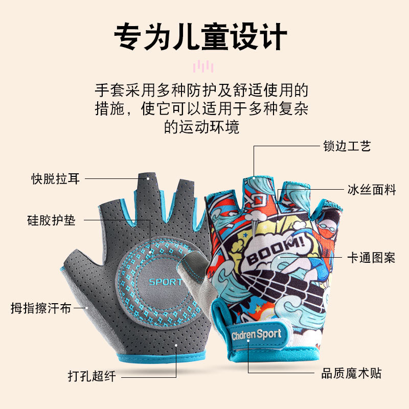 어린이 장갑 스포츠 반 손가락 보호 얇은 미끄럼 방지 손바닥 패드 수평 막대 훈련 자전거 균형 자전거 타기 장갑