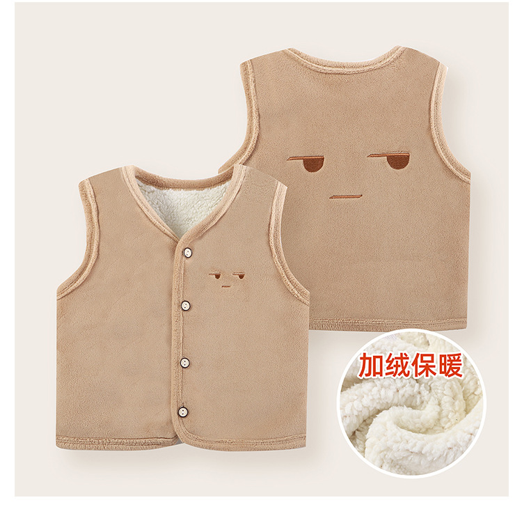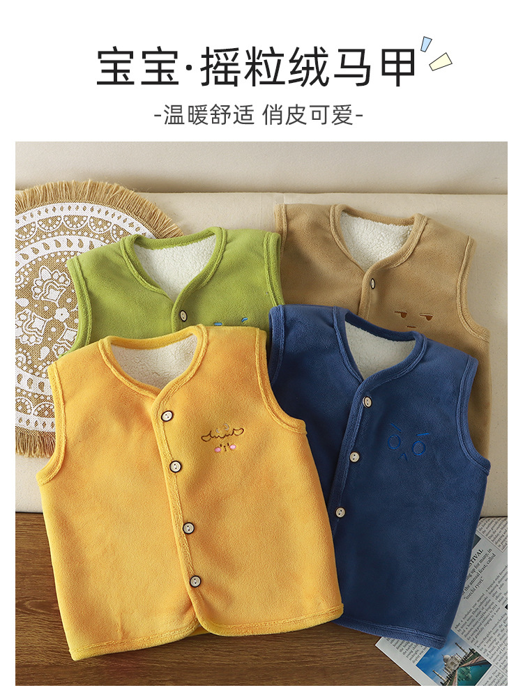 【재고정리】아동용 폴라 플리스 조끼 가을 겨울 두꺼운 아기용 상의 따뜻한 남녀공용 자수스토어 가기