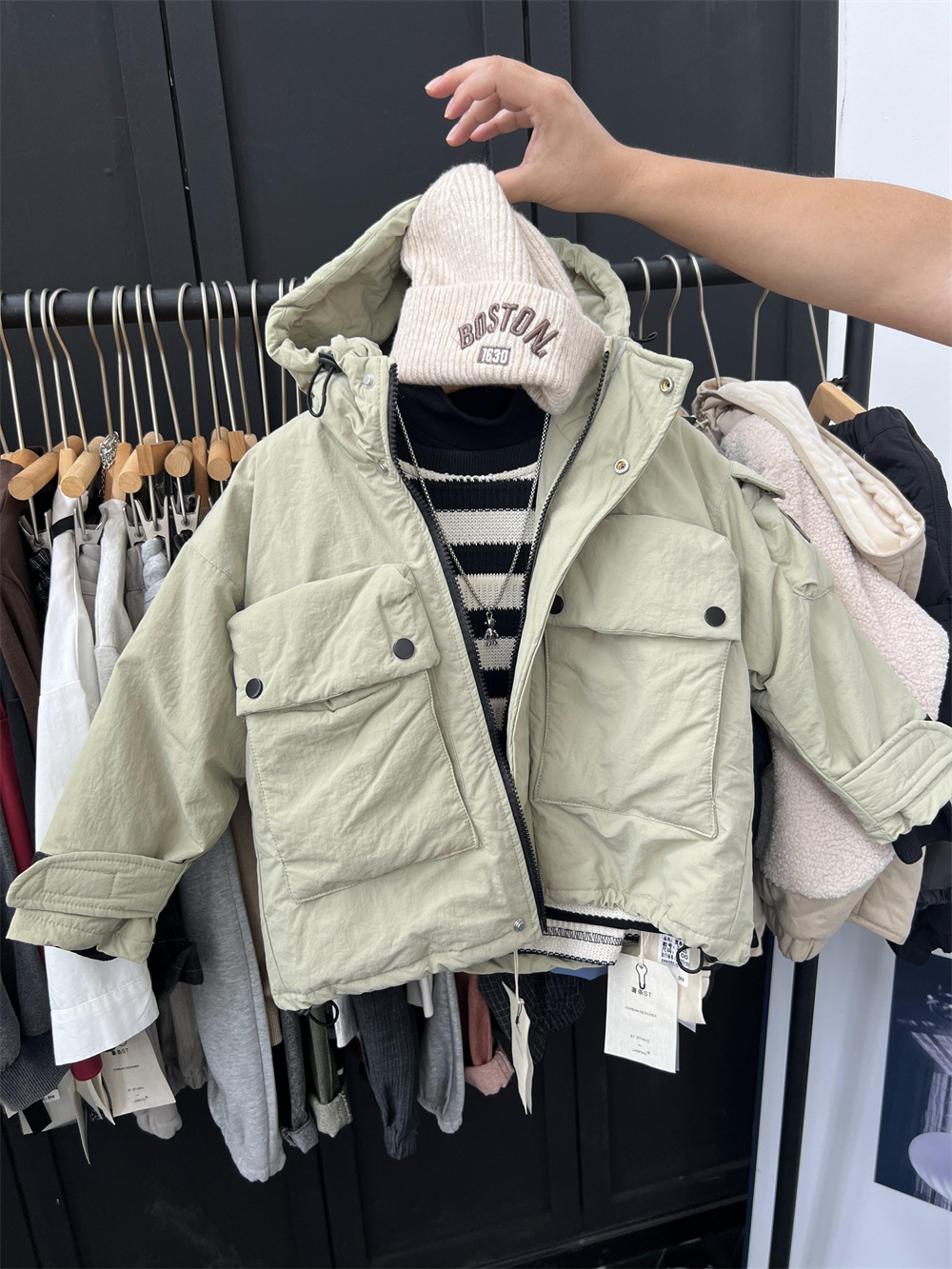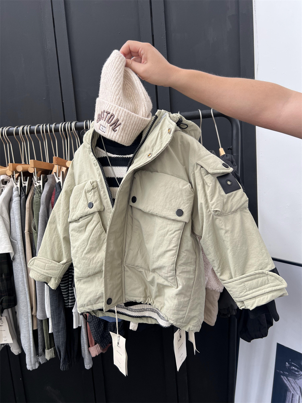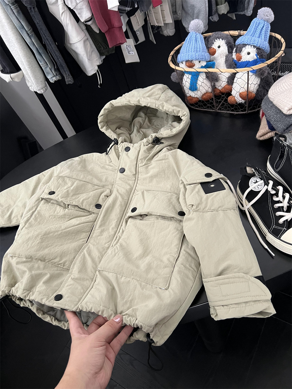 2024 겨울 어린이 미국 퀼트 재킷 방수 후드 재킷 소년 작업복 두꺼운 면화 코트스토어 가기