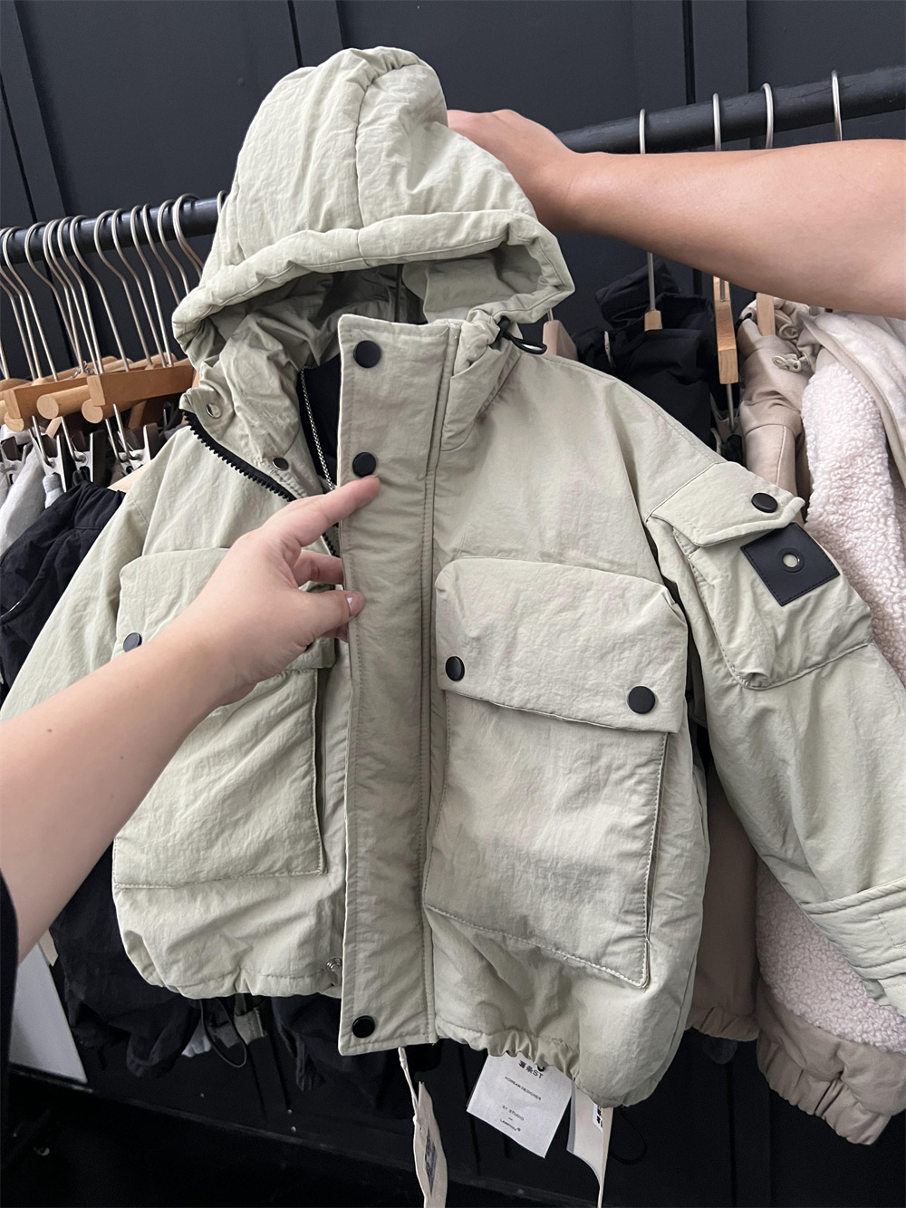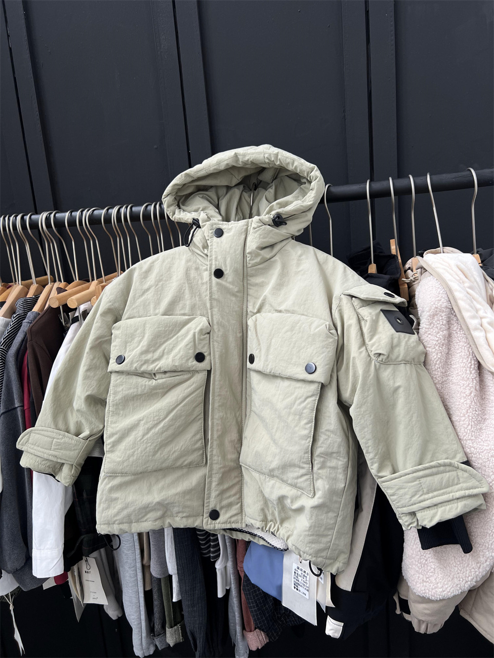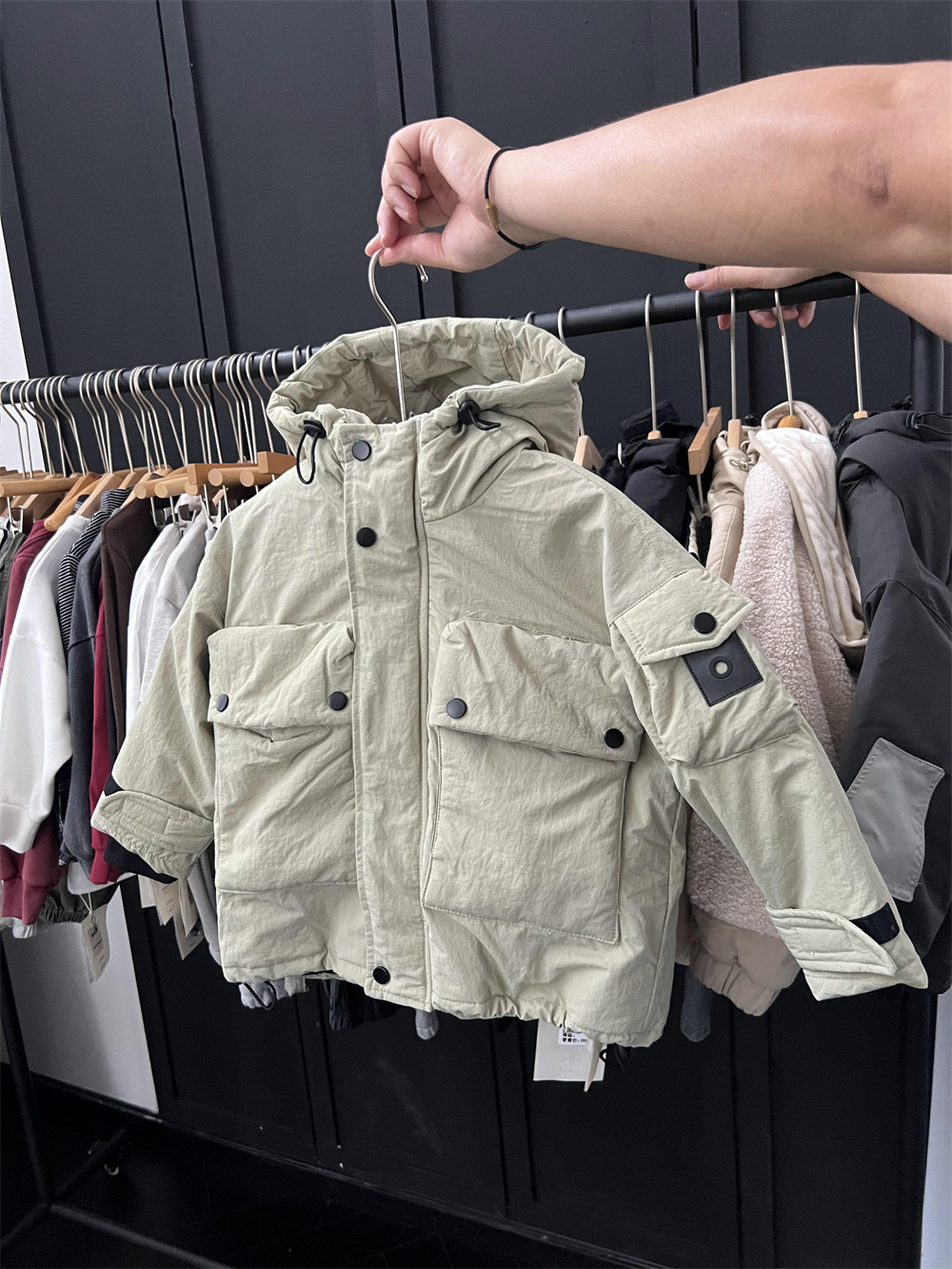 2024 겨울 어린이 미국 퀼트 재킷 방수 후드 재킷 소년 작업복 두꺼운 면화 코트스토어 가기