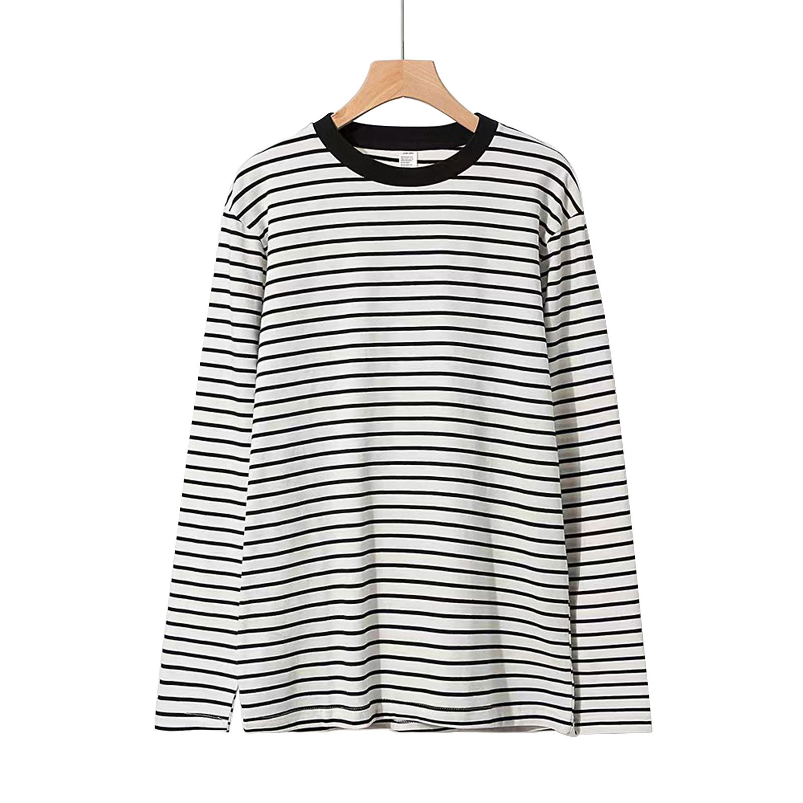 패션 스트라이프 티셔츠 여성의 2024 년 초가을 새로운 느슨한 라운드 넥 풀오버 롱 슬리브 탑 티셔츠