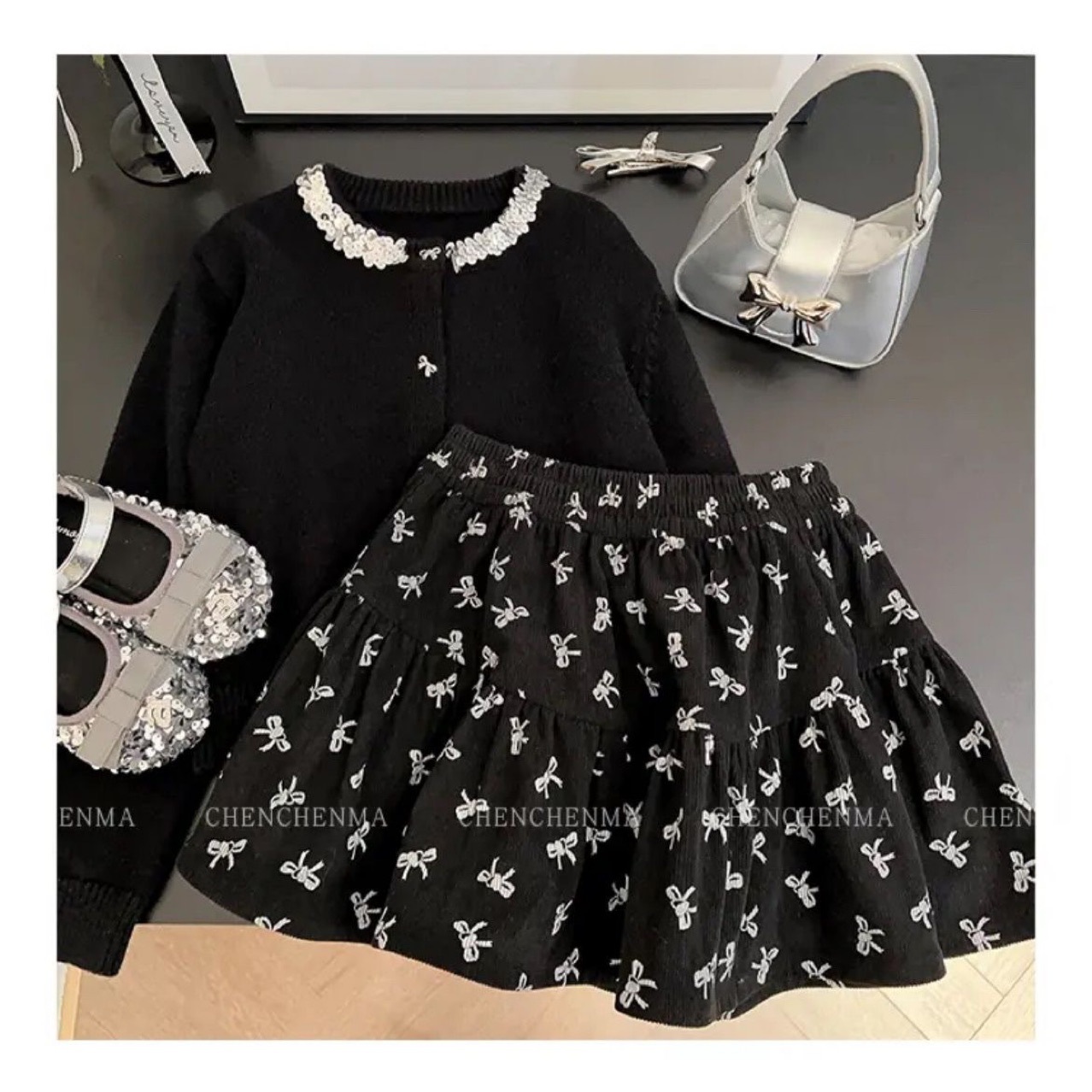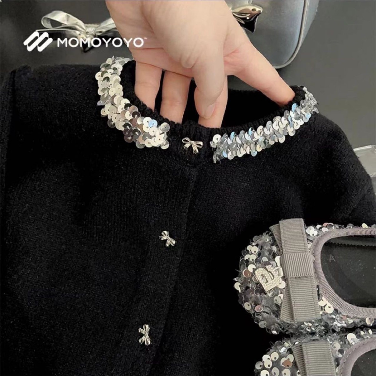 수제 구슬 라인스톤 프랑스 우아한 크루 넥 긴 소매 양모 니트웨어 소녀 스웨터 코트 가을스토어 가기