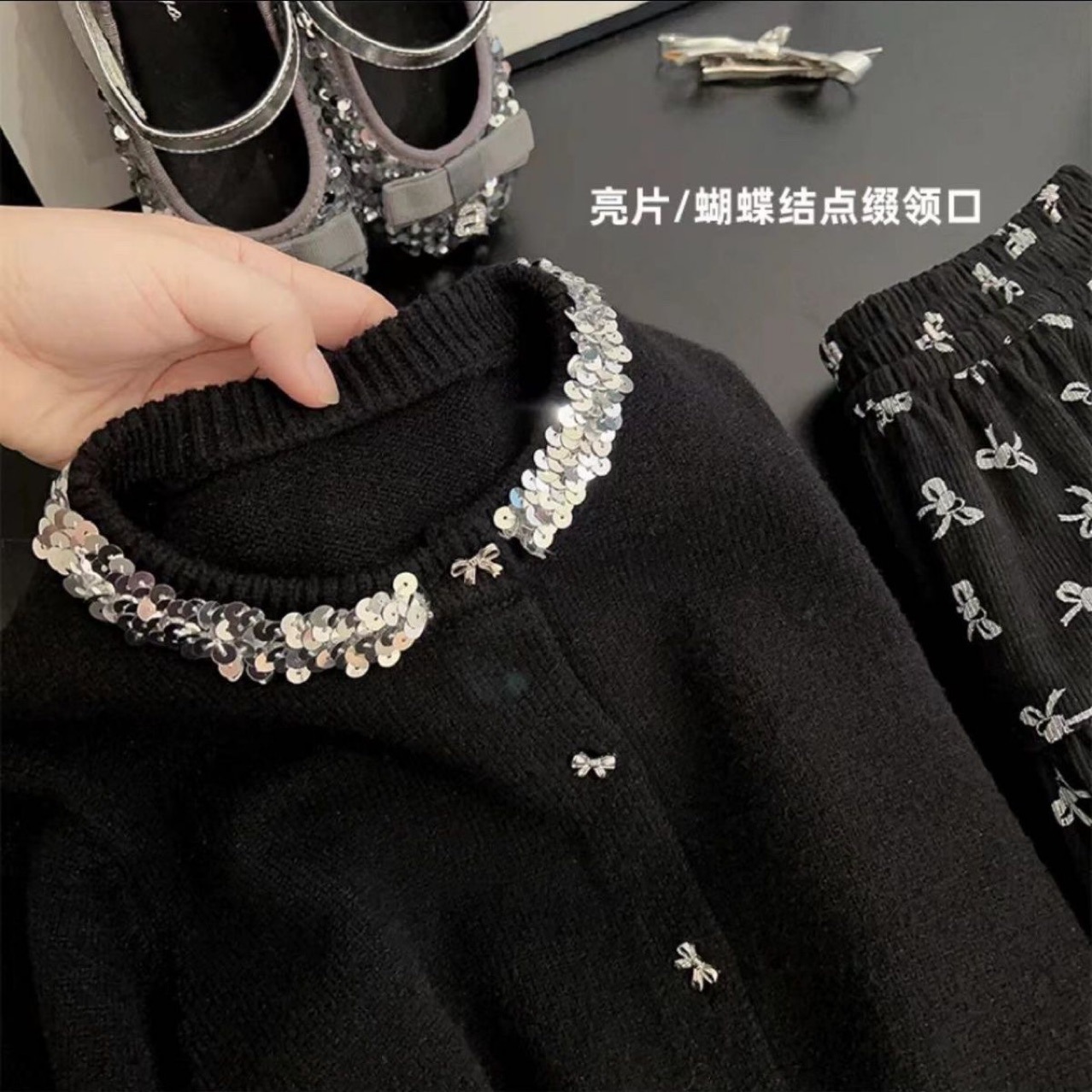 수제 구슬 라인스톤 프랑스 우아한 크루 넥 긴 소매 양모 니트웨어 소녀 스웨터 코트 가을