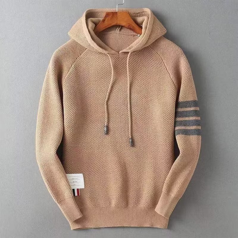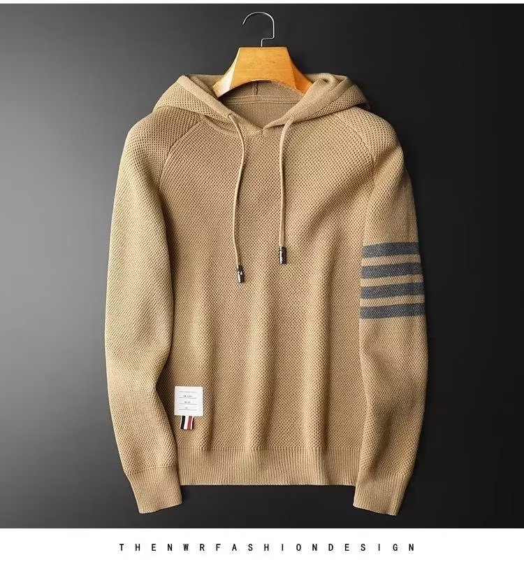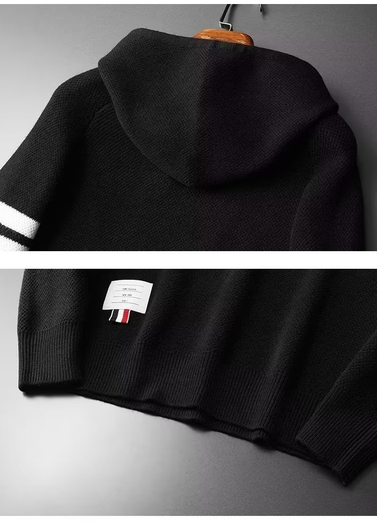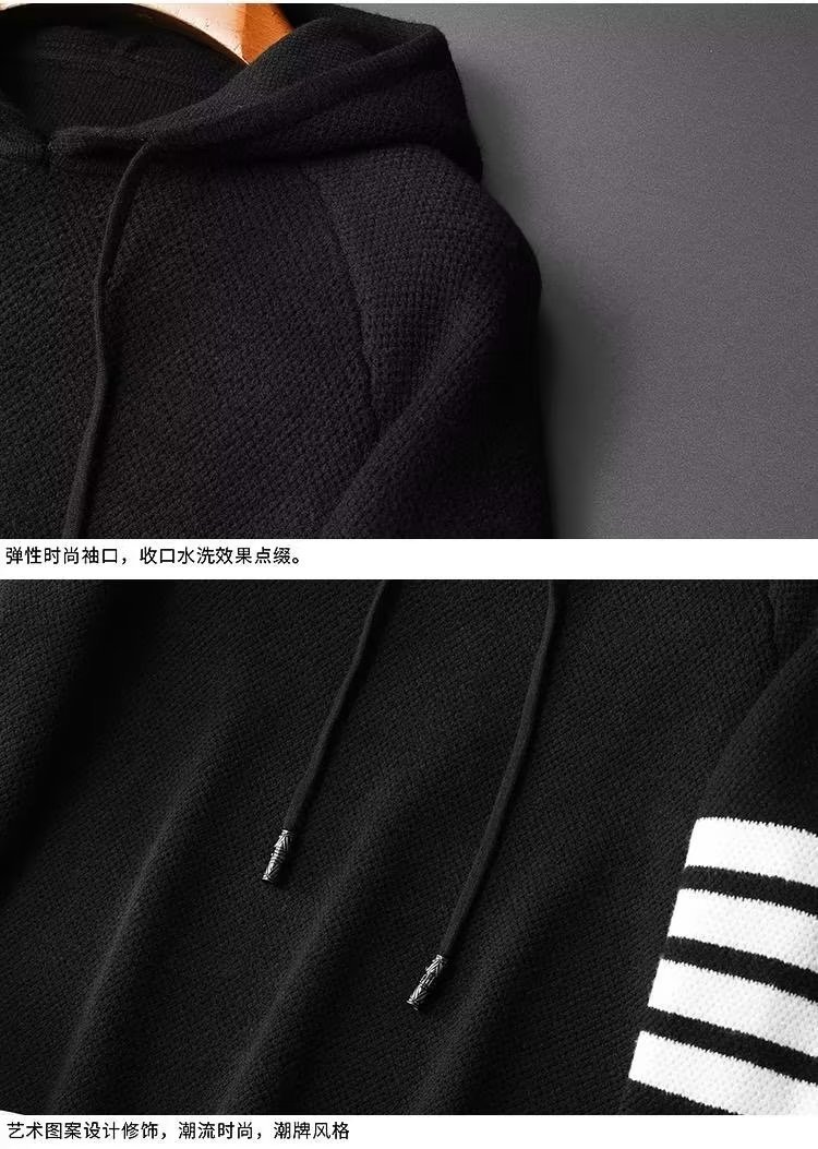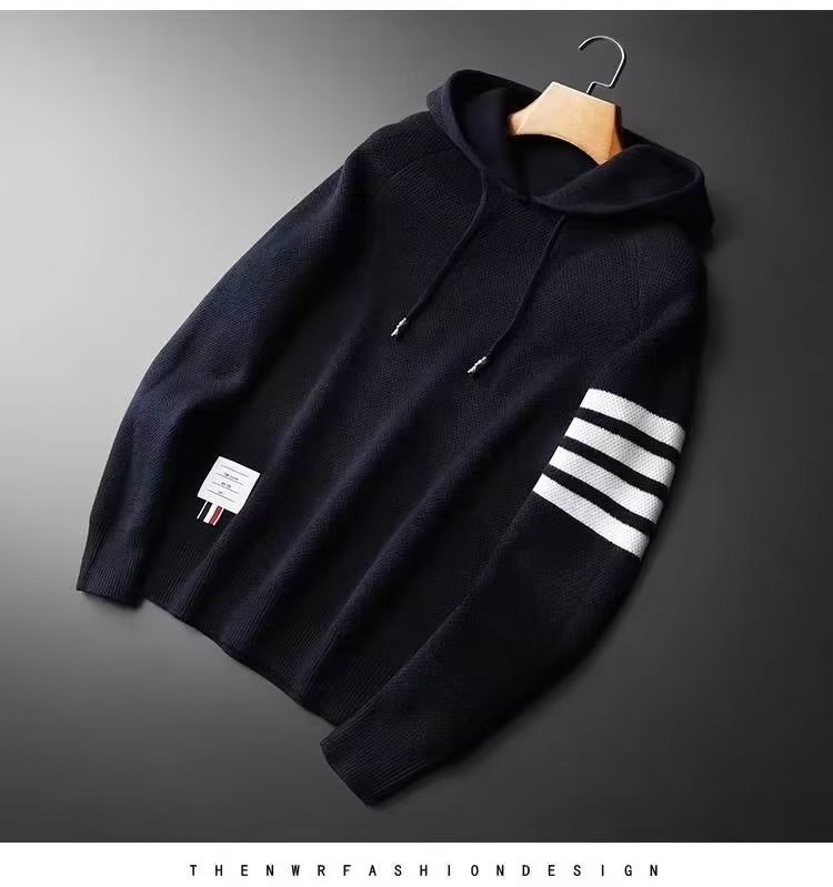 남성 가을과 겨울 패션 후드 니트 스웨터 풀오버 청소년 스트라이프 슬림 핏 긴팔 따뜻한 캐주얼 탑 트렌디스토어 가기