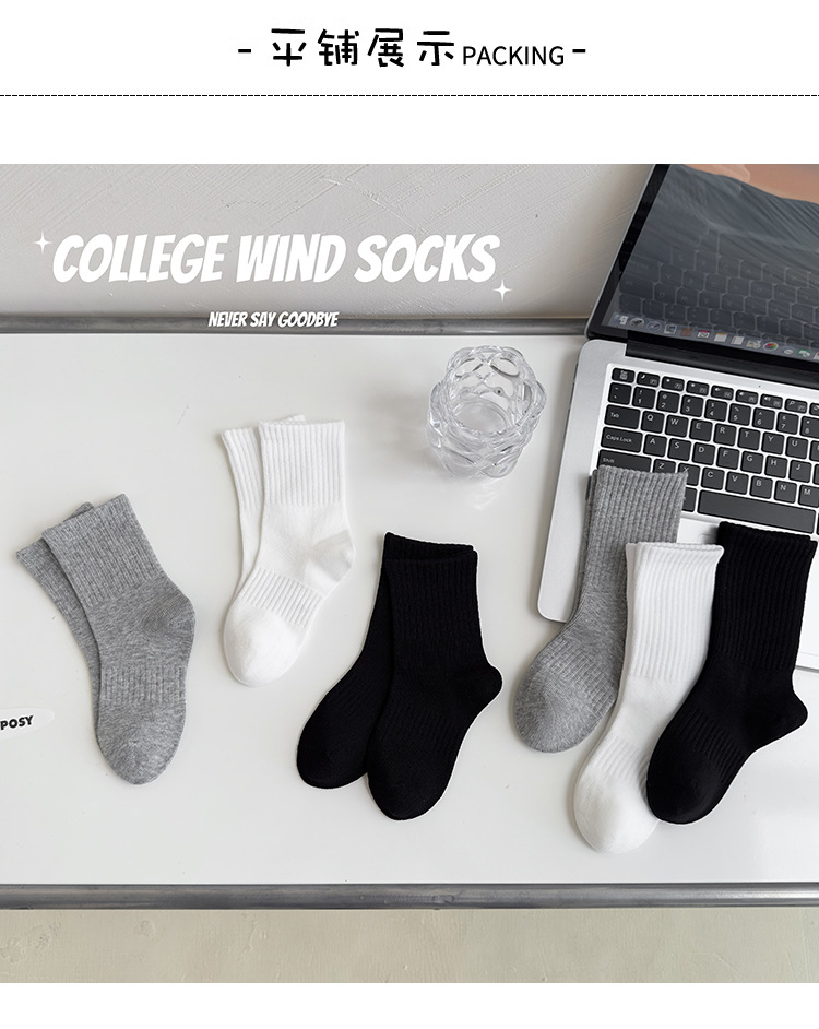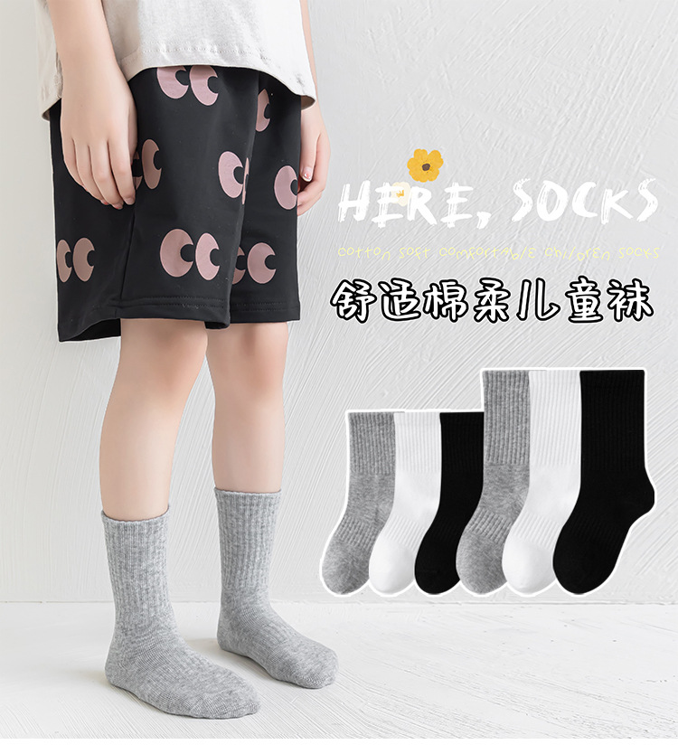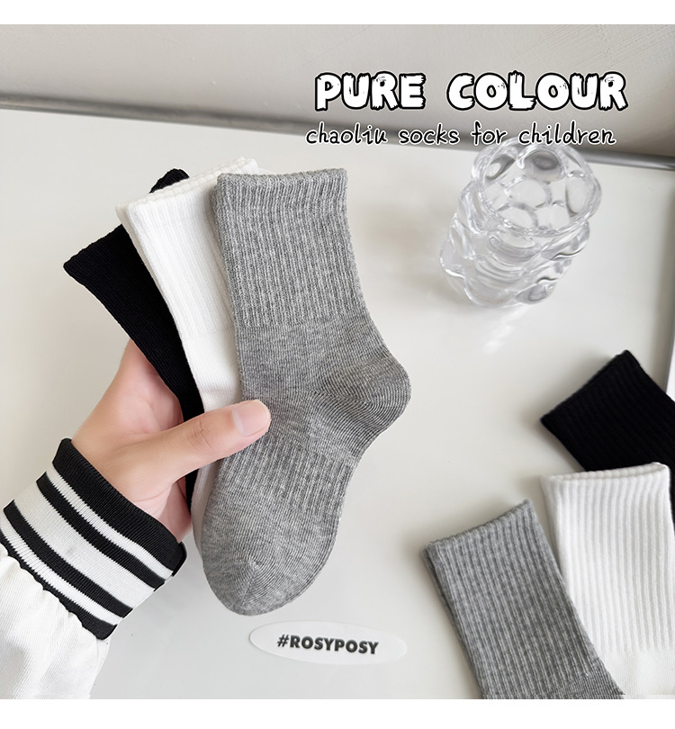 7A 항균 종아리 양말, 긴 검정색, 흰색 및 회색 양말, 소년 소녀용 두꺼운 양말, 따뜻한 어린이 양말, 통기성 및 다용도스토어 가기