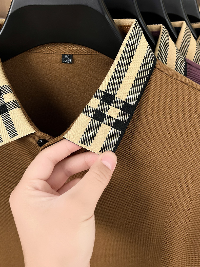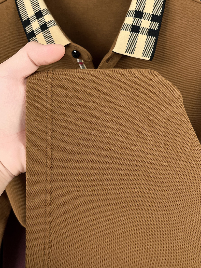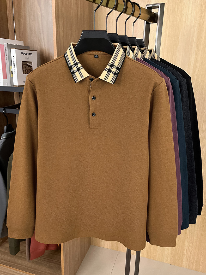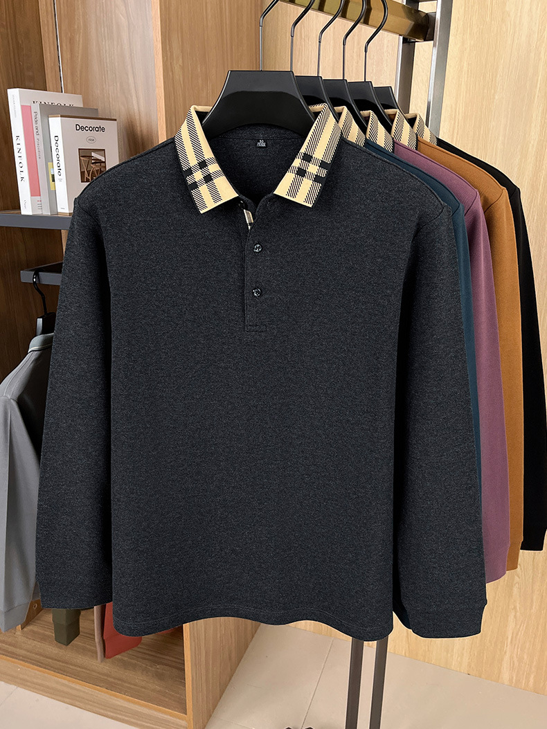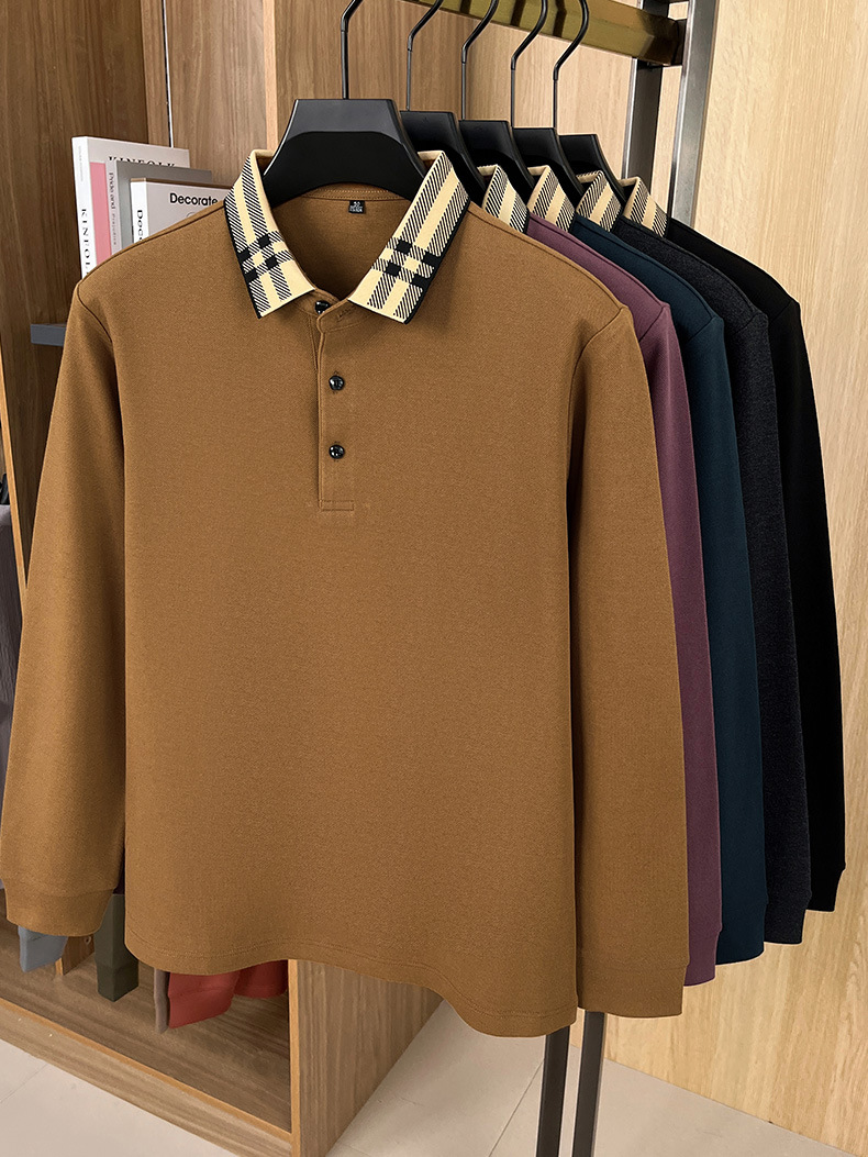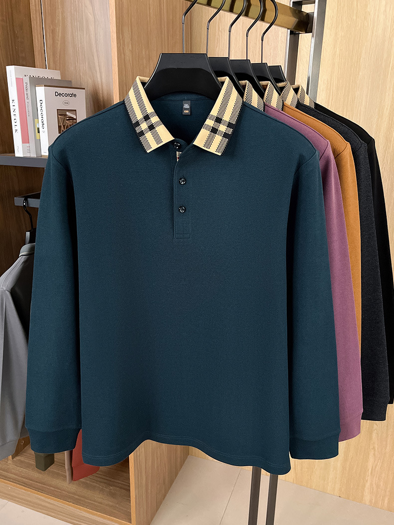 국경을 넘는 대외 무역 봄과 가을 자카드 칼라 플래켓 컬러 매칭 POLO 셔츠 면화 긴 소매 남성 패션 고급 청소년베이스 셔츠