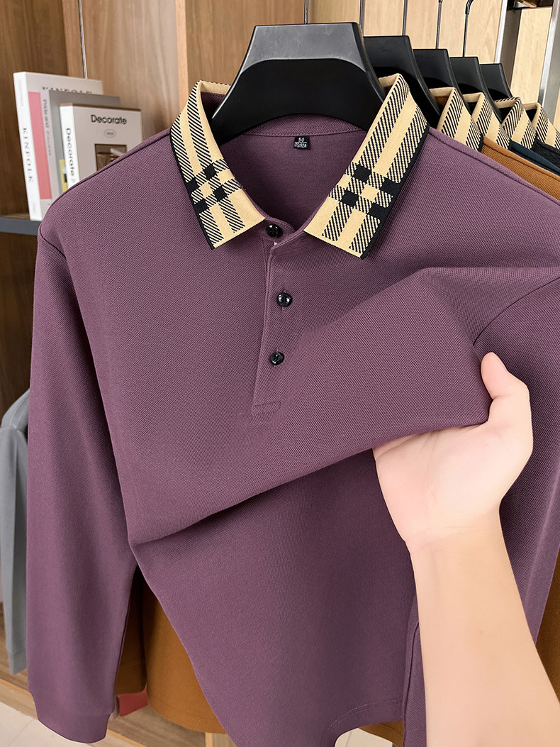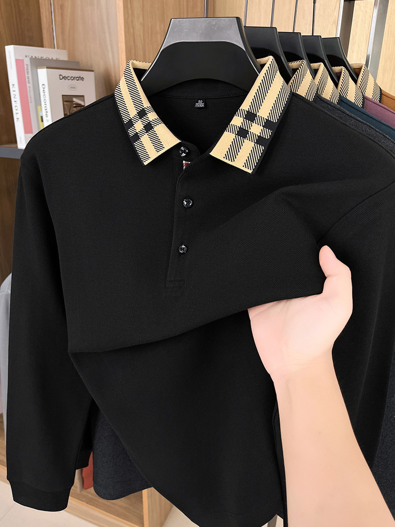 국경을 넘는 대외 무역 봄과 가을 자카드 칼라 플래켓 컬러 매칭 POLO 셔츠 면화 긴 소매 남성 패션 고급 청소년베이스 셔츠스토어 가기