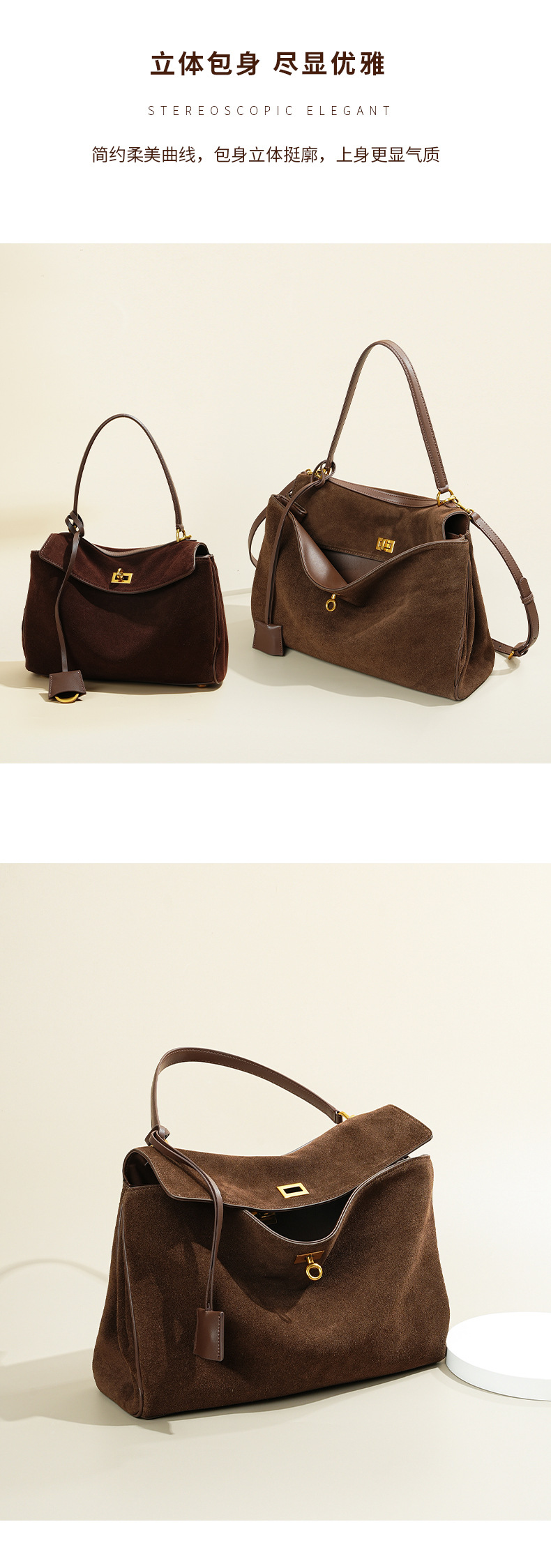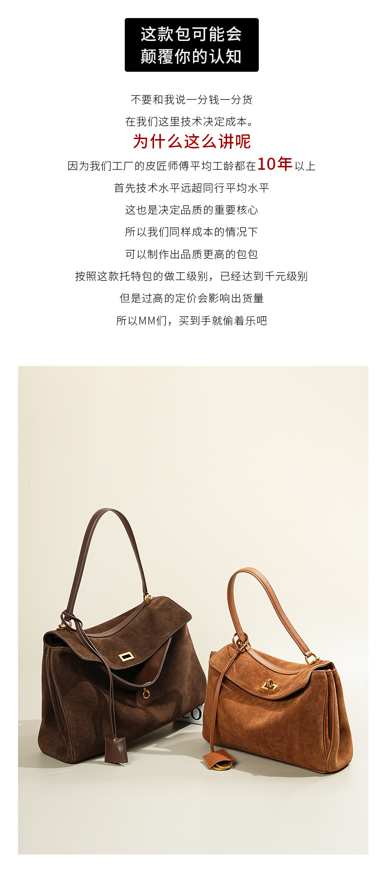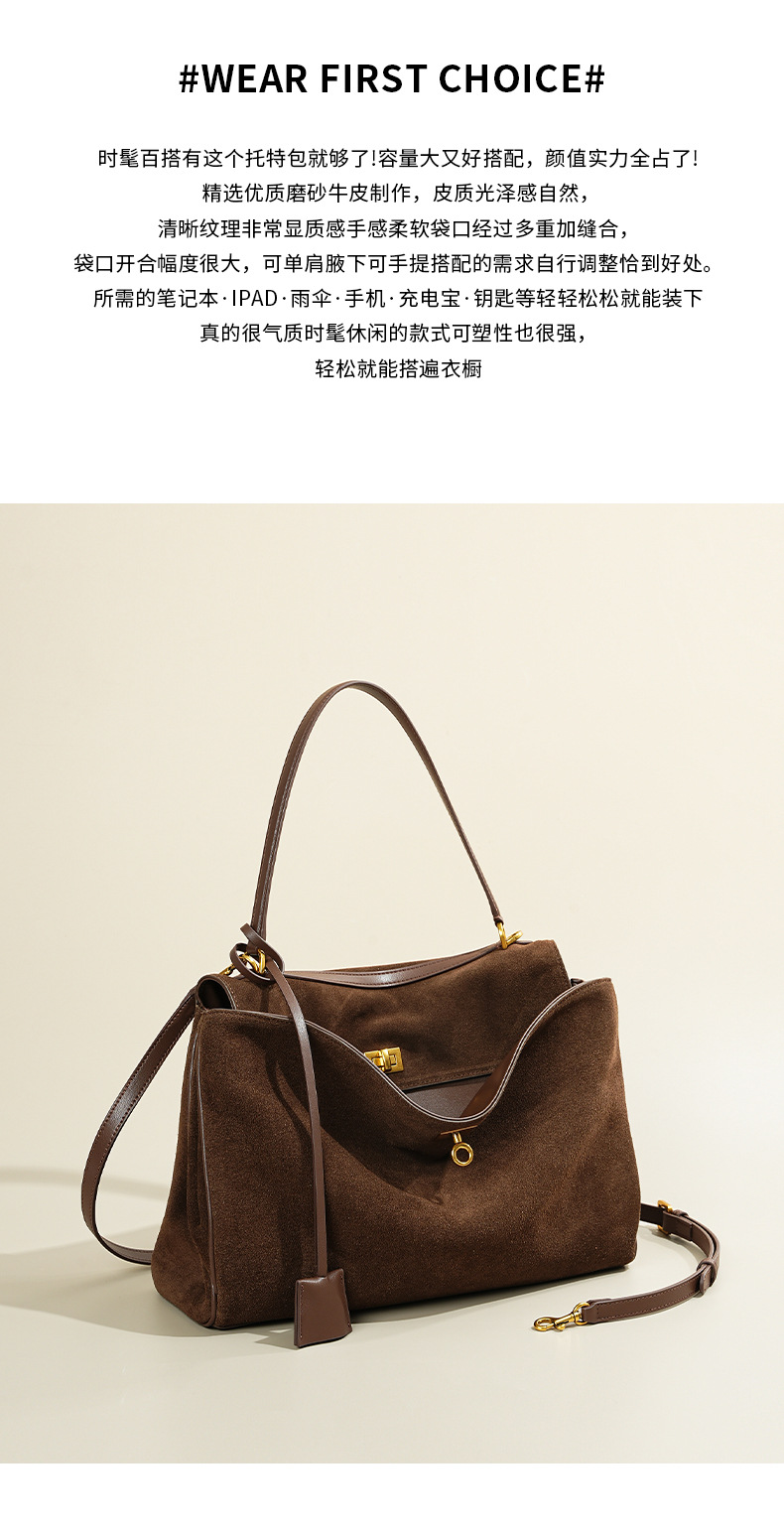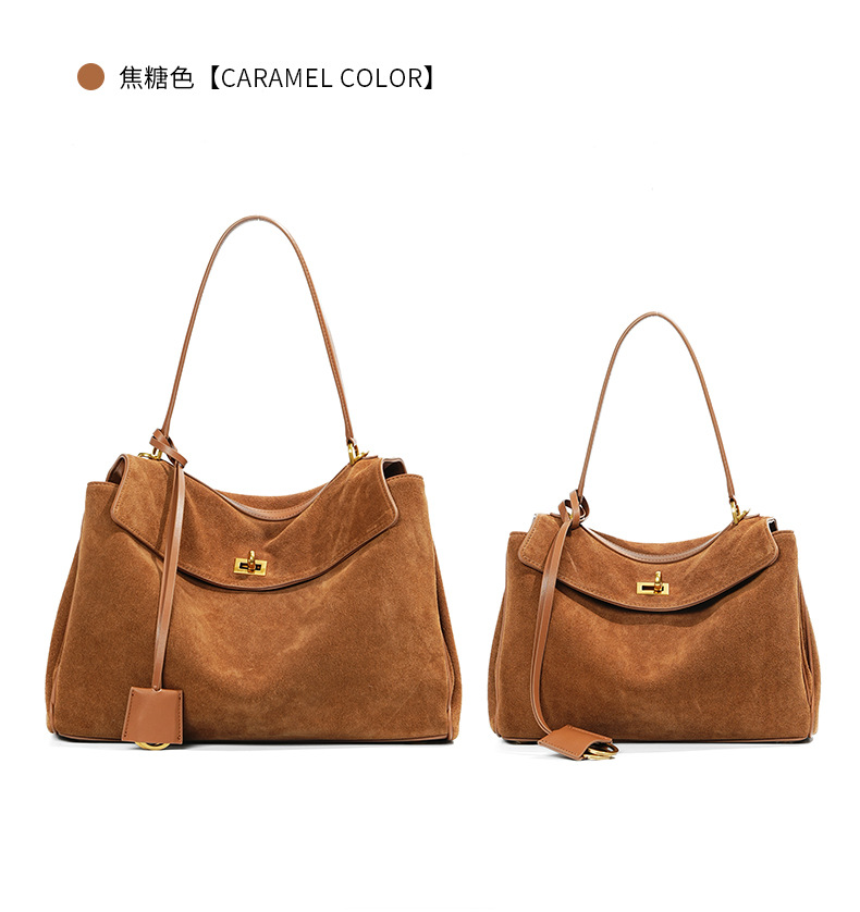 麂皮秋冬磨砂牛皮Rodeo凯莉托特包 锁扣通勤大容量单肩手提腋下包