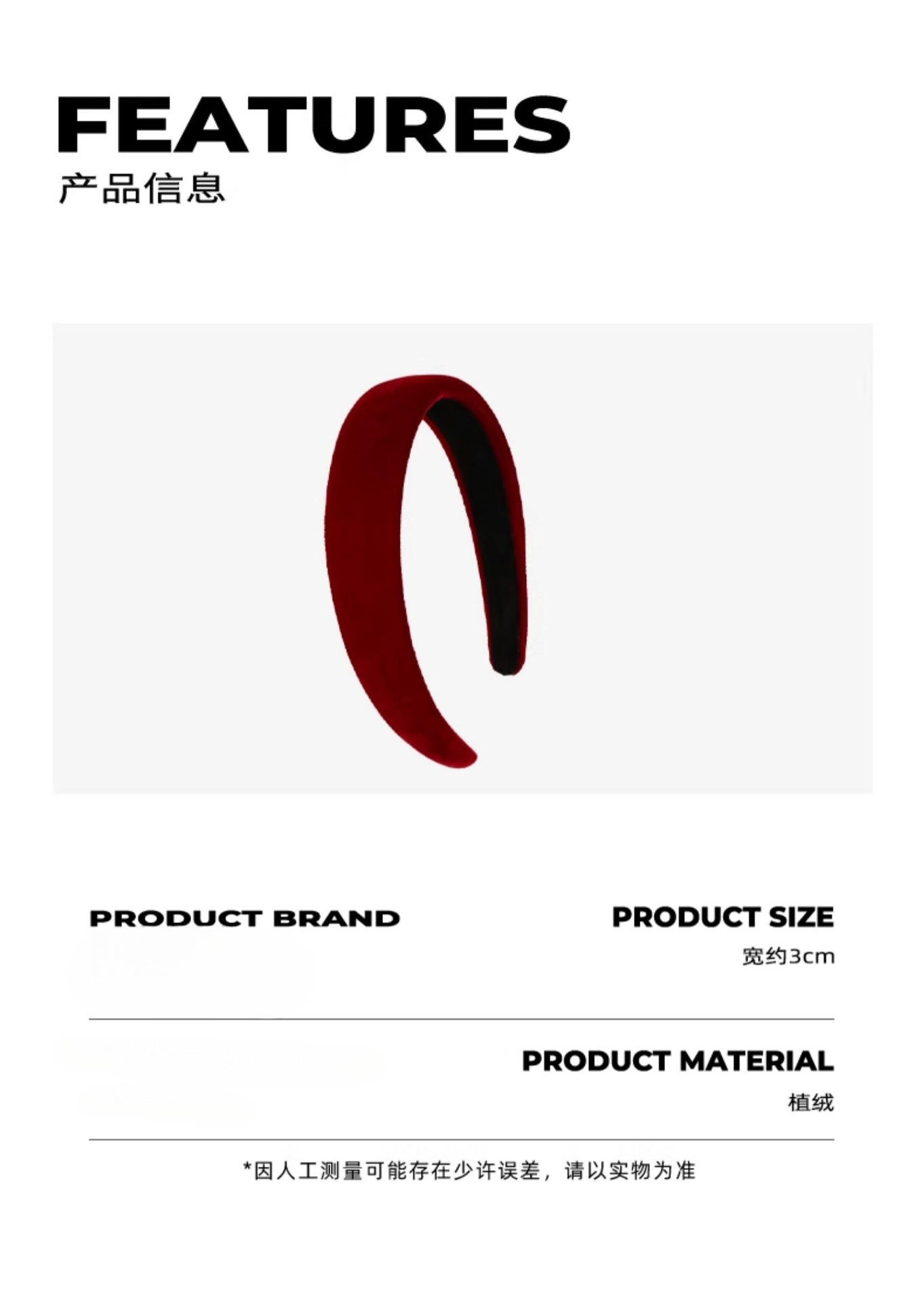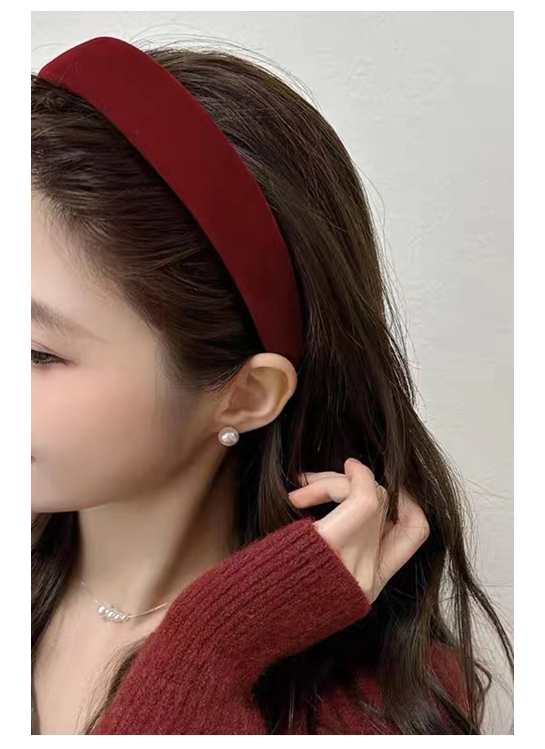 솔리드 컬러 벨벳 머리띠 여성의 2024 새로운 스타일 우아한 올매치 하이 크랜얼 탑 머리띠 와이드 브릴 인터넷-레드 선물 헤어 스탬프 헤드웨어