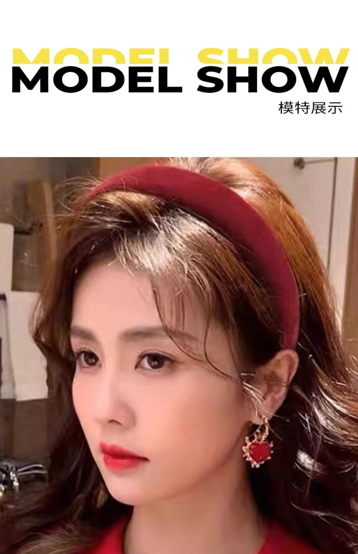 솔리드 컬러 벨벳 머리띠 여성의 2024 새로운 스타일 우아한 올매치 하이 크랜얼 탑 머리띠 와이드 브릴 인터넷-레드 선물 헤어 스탬프 헤드웨어스토어 가기