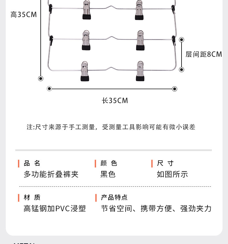 국경을 넘는 다기능 접이식 바지걸이, 다층 접이식 치마걸이, 클립 포함, 공간 절약, JK 치마 클립 수납 도구