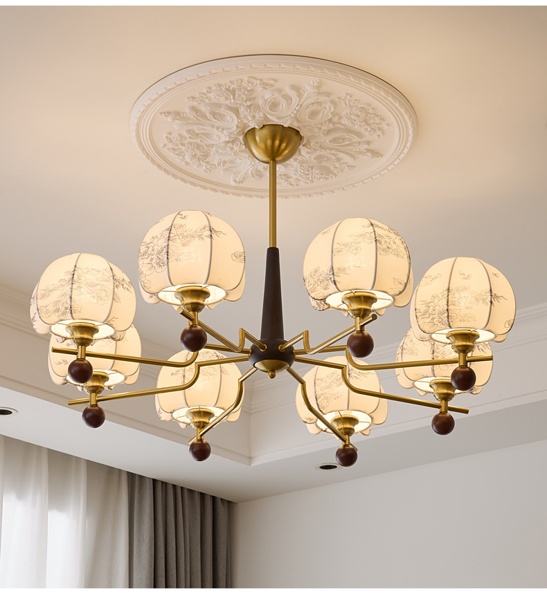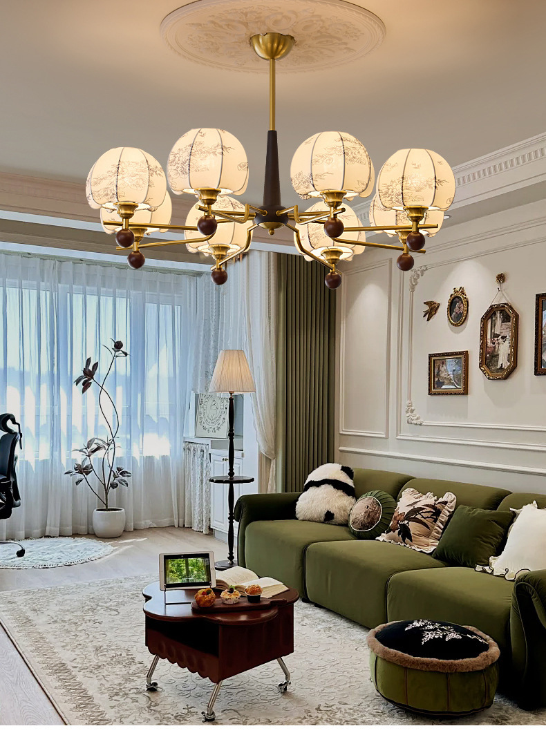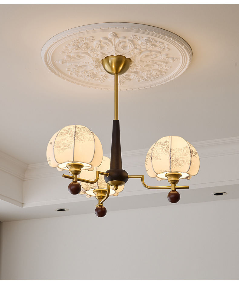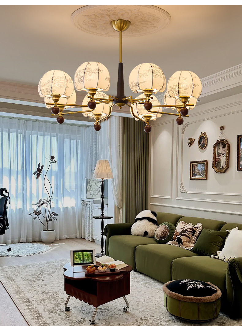 골동품 거실 램프 미국 빈티지 램프 창조적 인 레스토랑 침실 램프 프랑스 난양 스타일 인쇄 나무 샹들리에