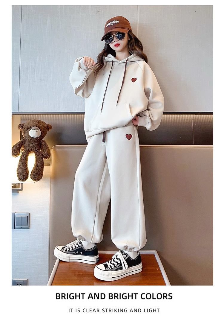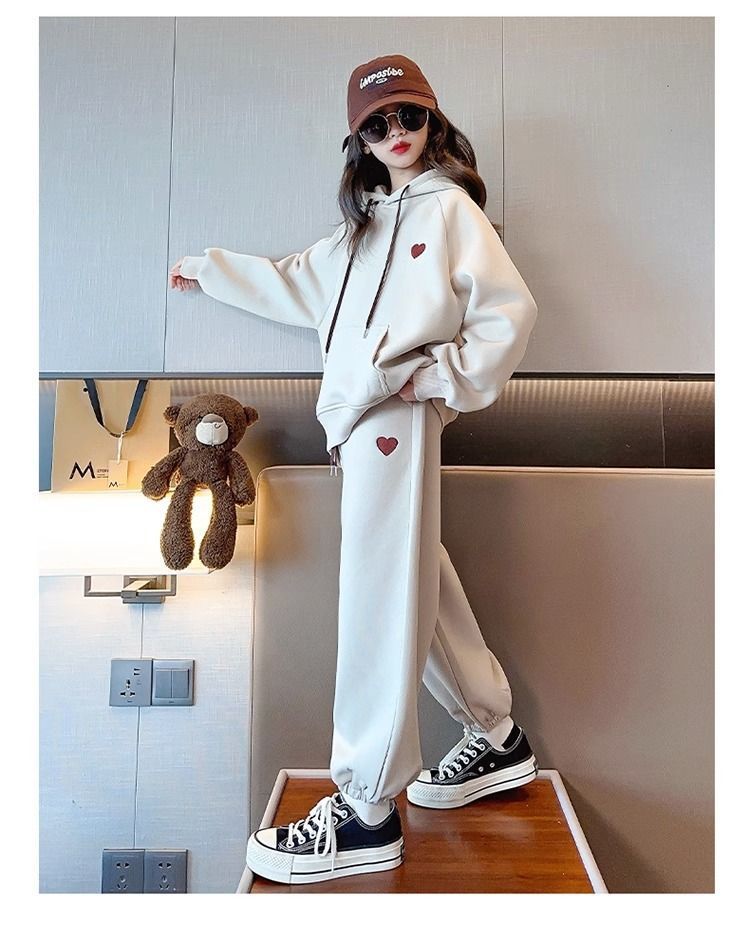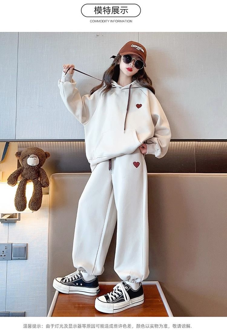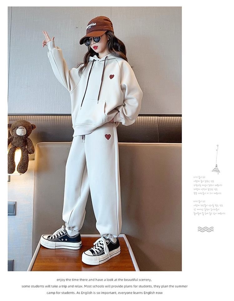 소녀 세트 기모 두꺼운 가을과 겨울 큰 소년 소녀 스포츠 스웨터 2 피스 세트 어린이 유행 옷스토어 가기