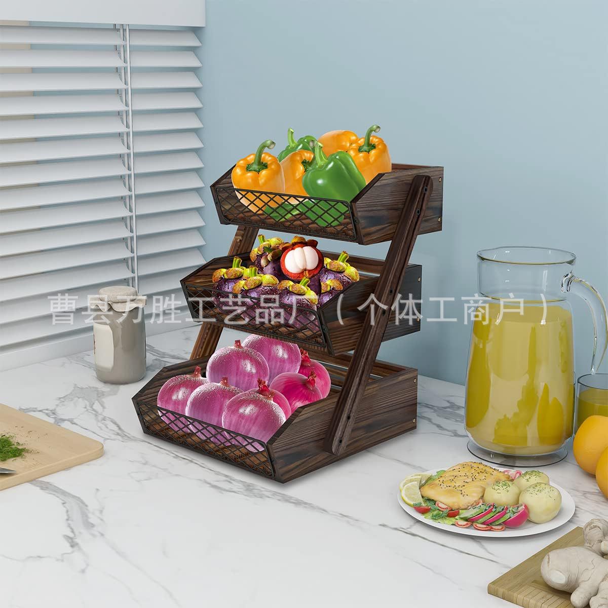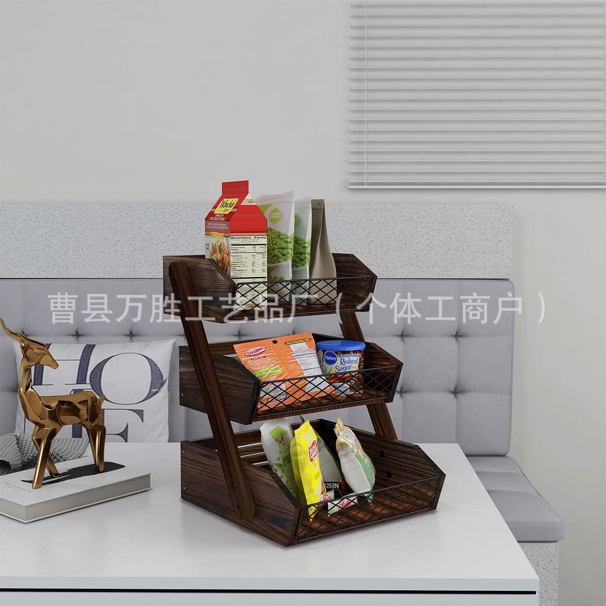 나무 다층 저장 랙 주방 3 층 저장 랙 데스크탑 과일 바구니 야채 나무 탄산 야채 저장 랙