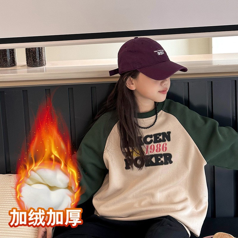 어린이 가을과 겨울 기모 두꺼운 접합 슬리브 스웨트 셔츠 어린이 느슨한 캐주얼 긴 소매 탑 간단한 편지 티셔츠스토어 가기