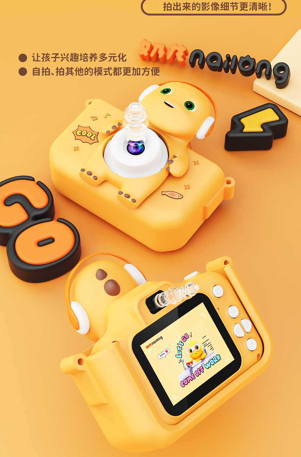 HD 우유 용 만화 어린이 카메라 디지털 카메라 전면 및 후면 더블 샷 퍼즐 미니 카메라 휴일 선물스토어 가기