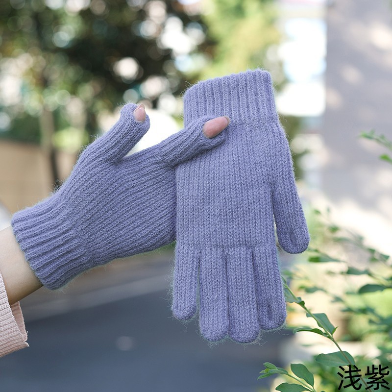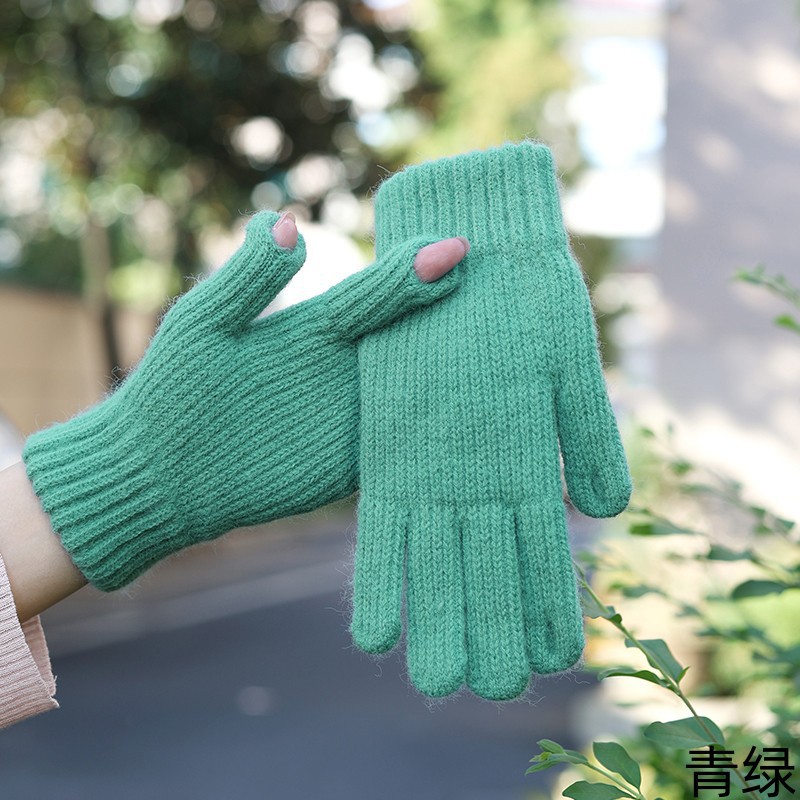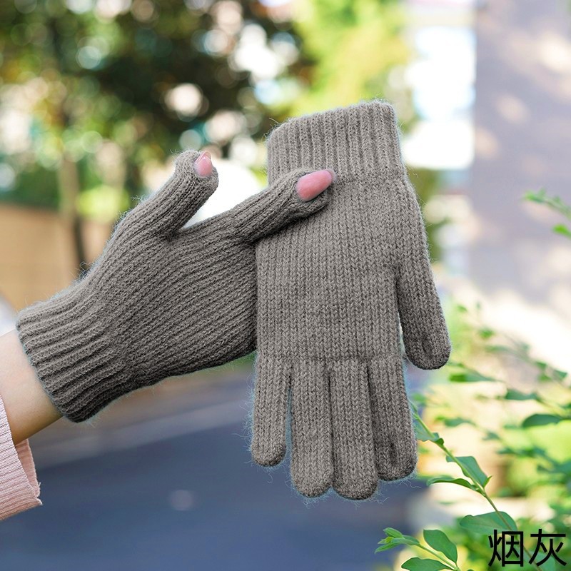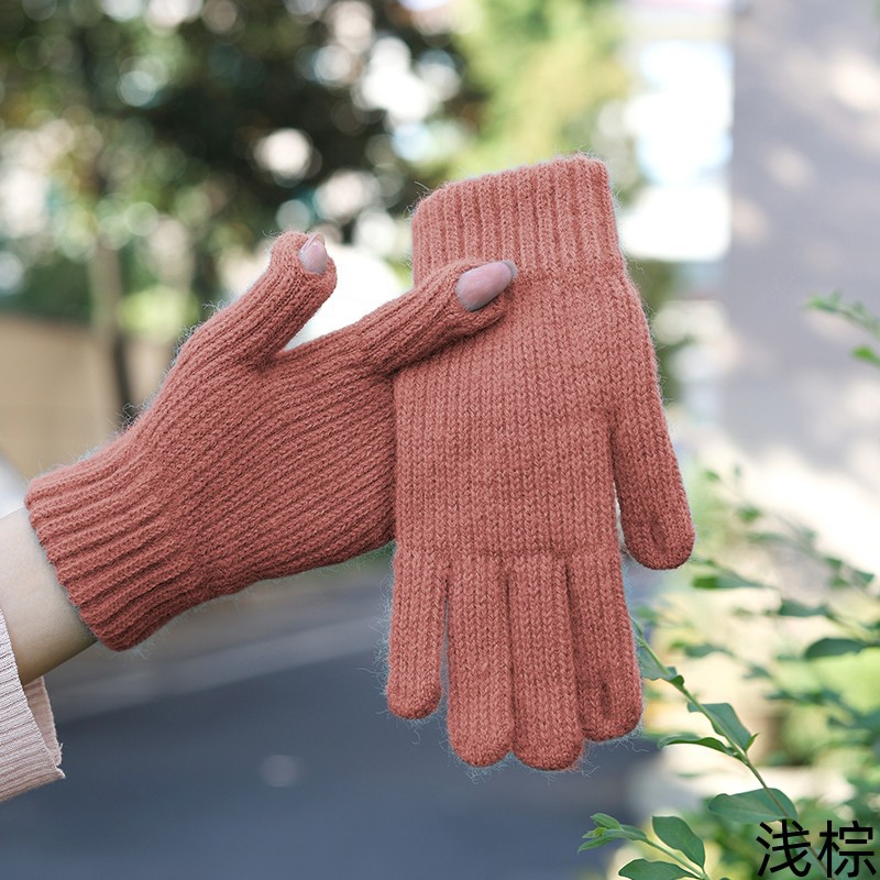 장갑 여성의 가을과 겨울 니트 감기 따뜻한 승마 사이클링 학생들을위한 두꺼운 터치 스크린 다섯 손가락 장갑