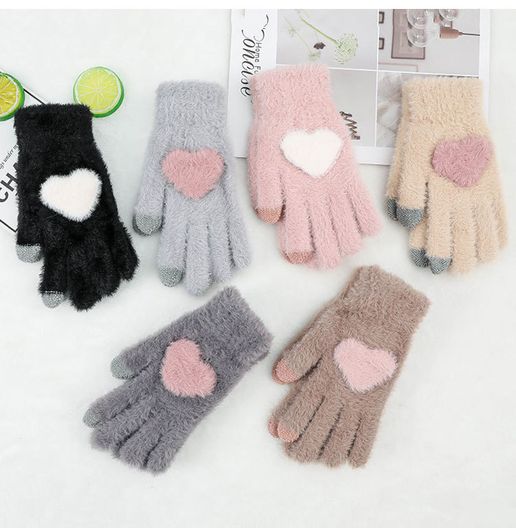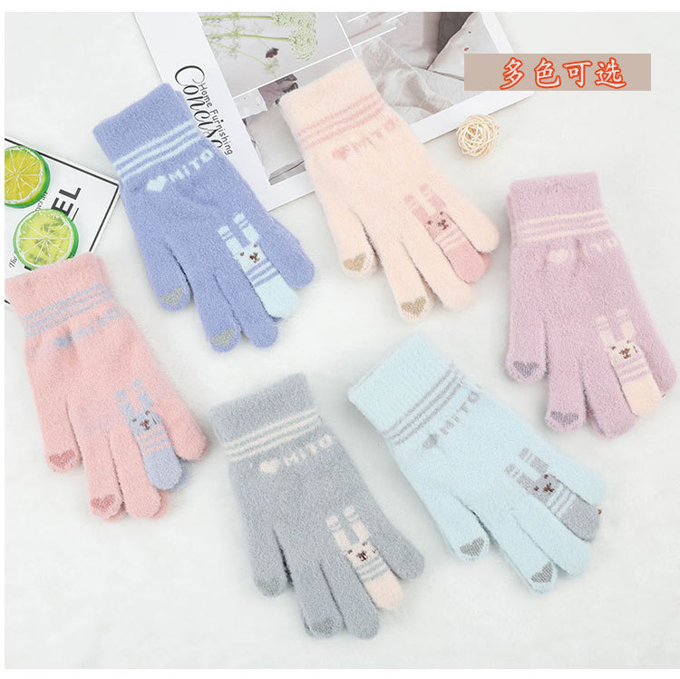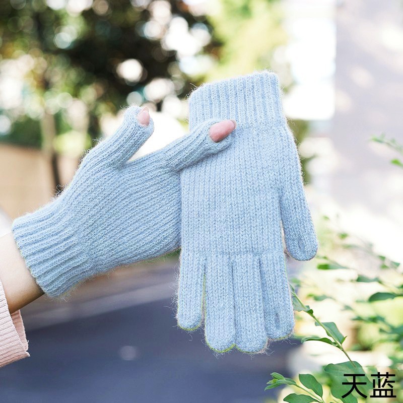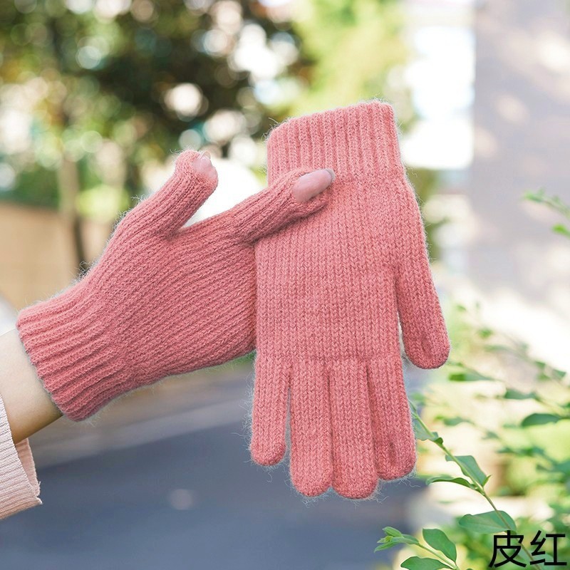 장갑 여성의 가을과 겨울 니트 감기 따뜻한 승마 사이클링 학생들을위한 두꺼운 터치 스크린 다섯 손가락 장갑스토어 가기