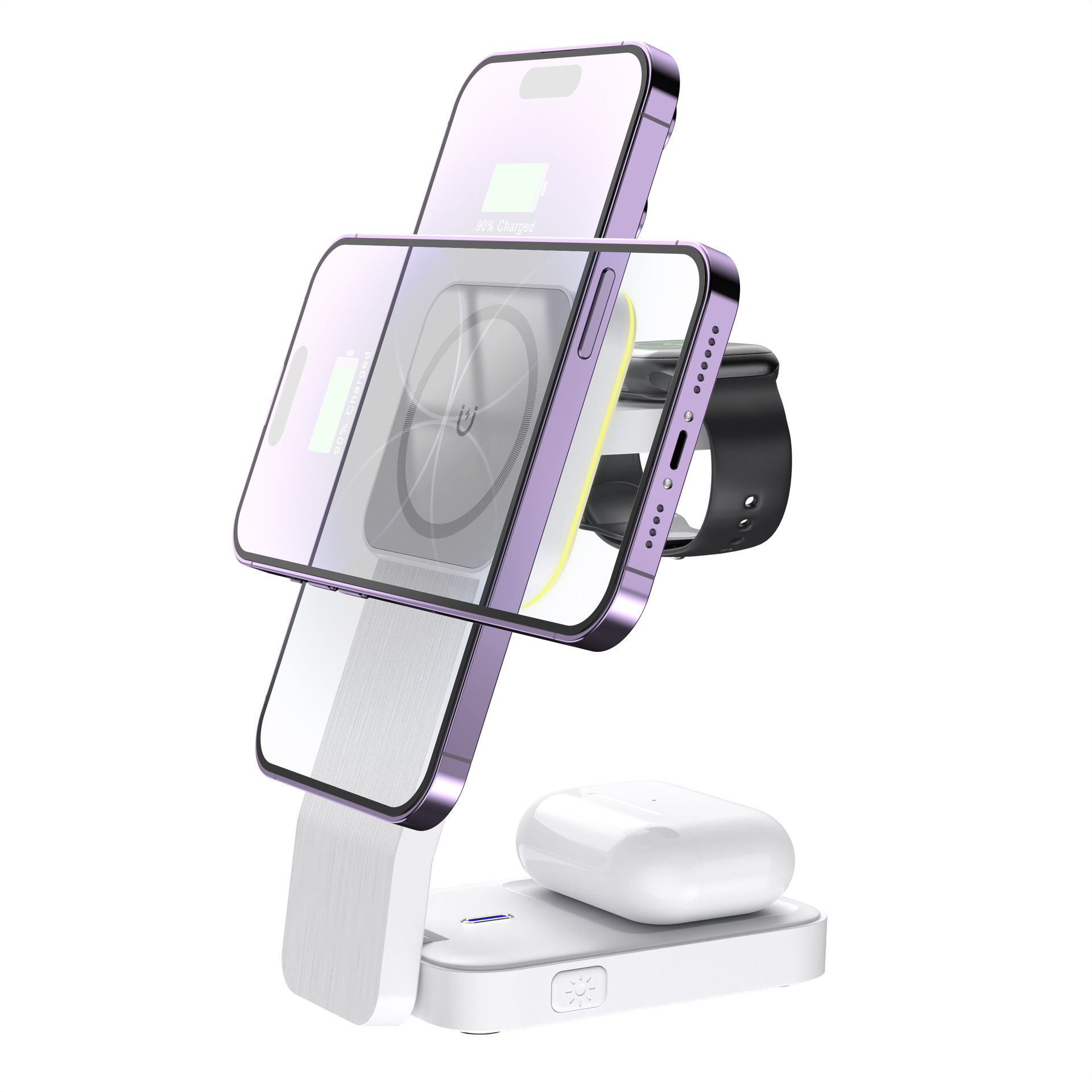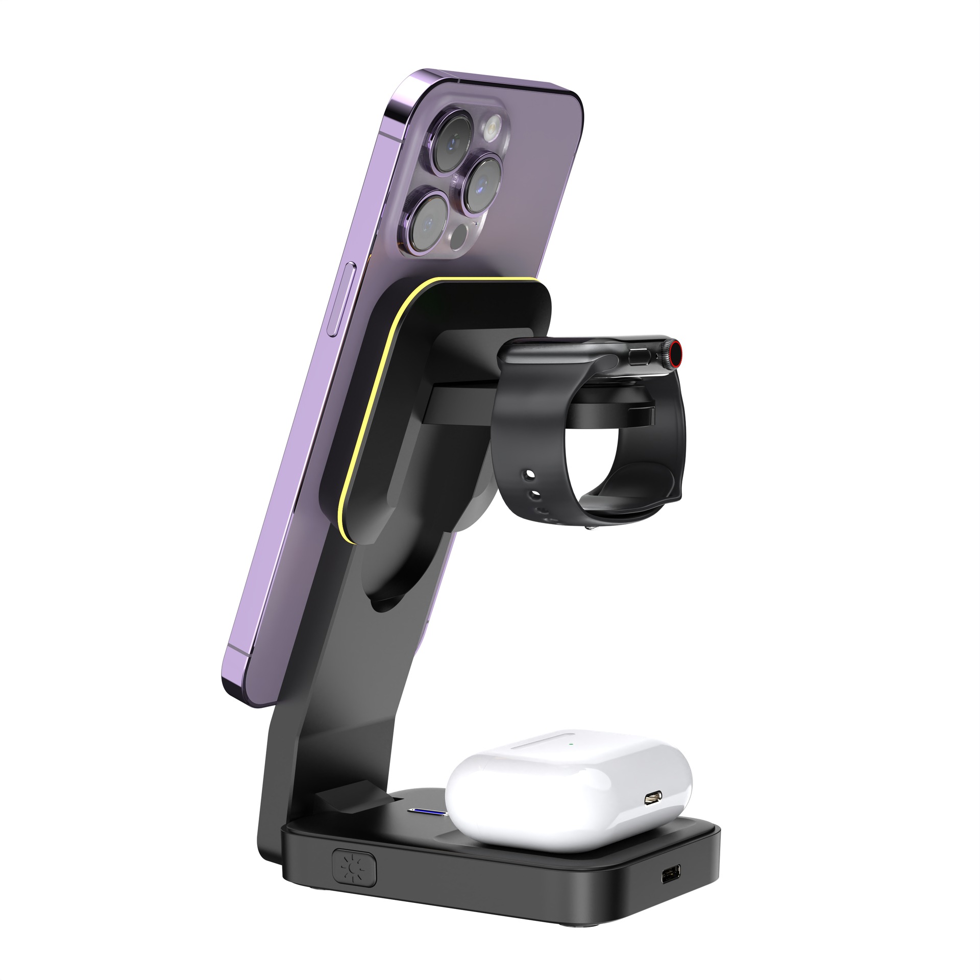 국경 접히는 자기 흡입 4 대 1 무선 충전기 15W 빠른 충전기 애플 휴대 전화 브래킷 무선 충전기