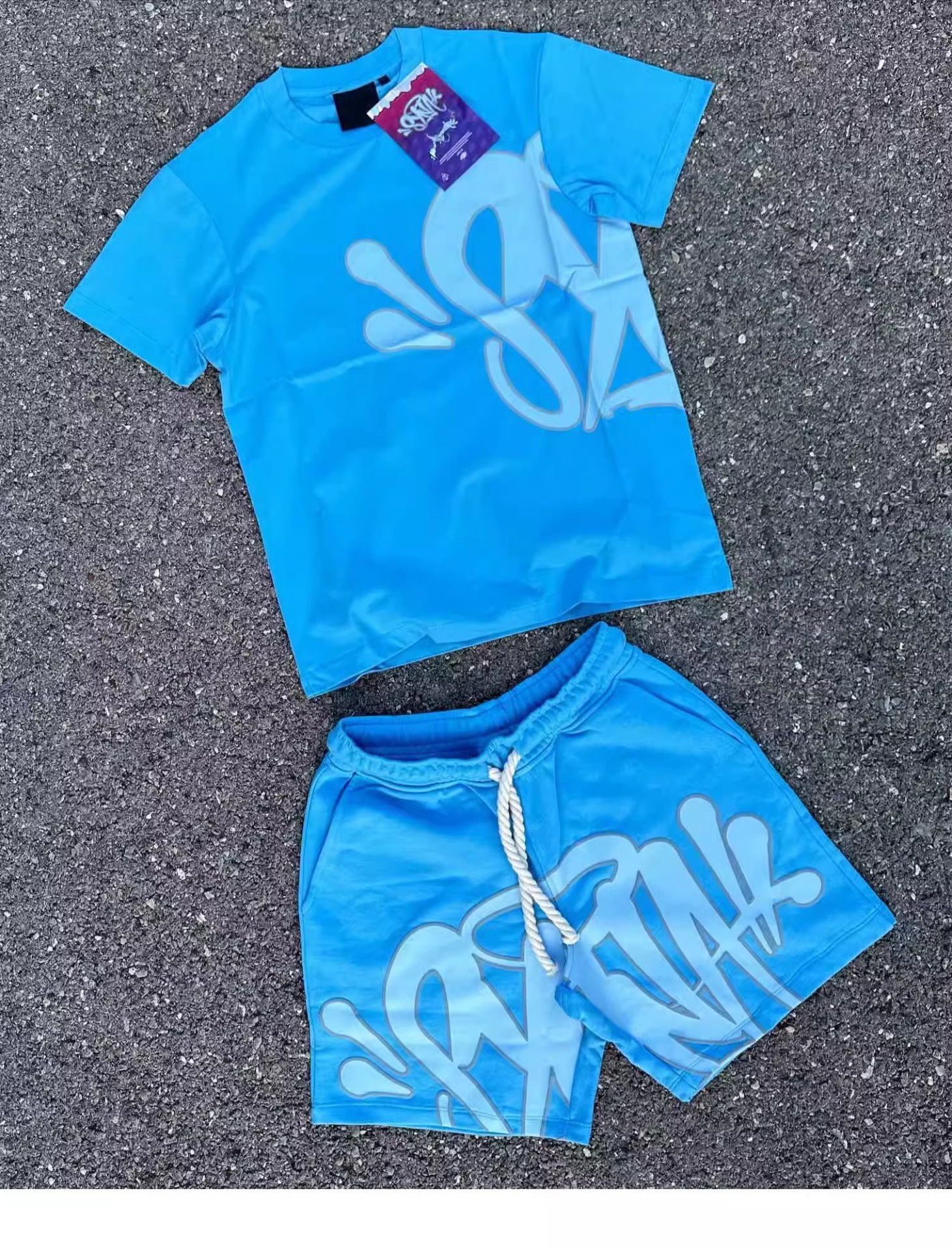 유럽과 미국식 스트리트 힙합 남녀 편지 인쇄 느슨한 반팔 최고 남성 여름 패션 브랜드 캐주얼 스포츠 세트