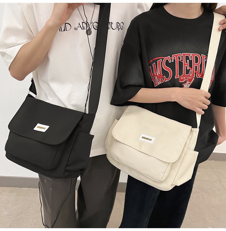 홍콩 스타일 빈티지 솔리드 컬러 캔버스 가방 틈새 디자인 캐주얼 커플 어깨 가방 경량 방수 경량 경량 경량 경량 경량 경량 캔버스 가방스토어 가기