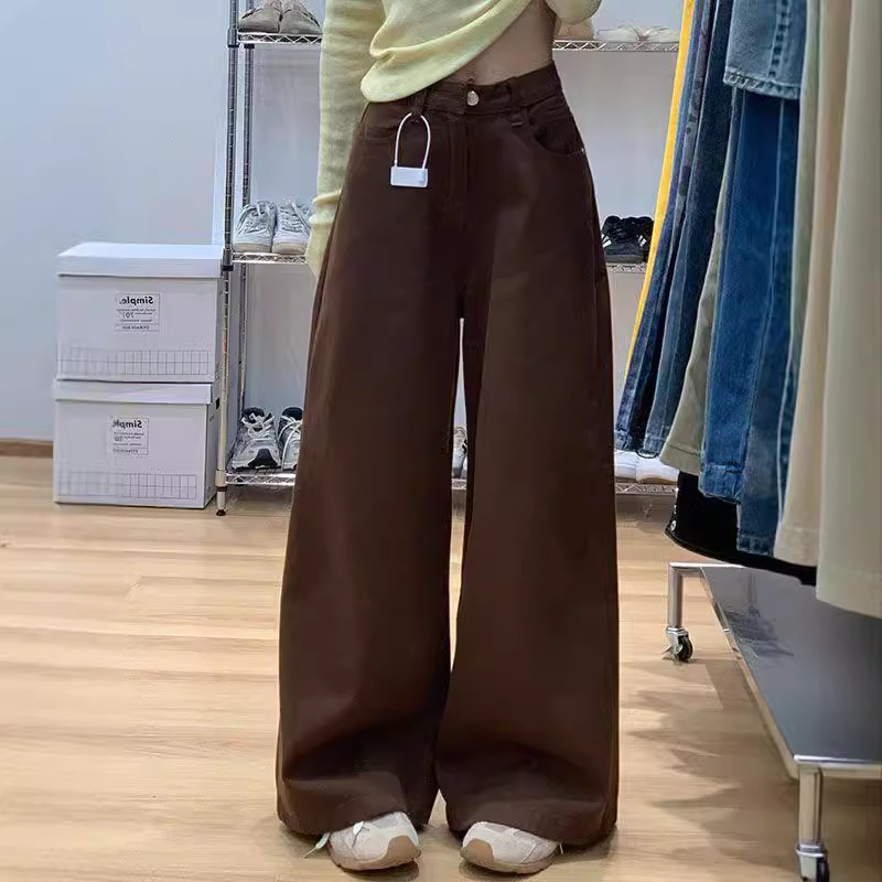 여성용 브라운 와이드 진, 루즈, 드레이프, 스몰, 하이 웨이스트, 루즈, 캐주얼, 다용도, 슬리밍, 스트레이트 레그, 바닥 길이스토어 가기