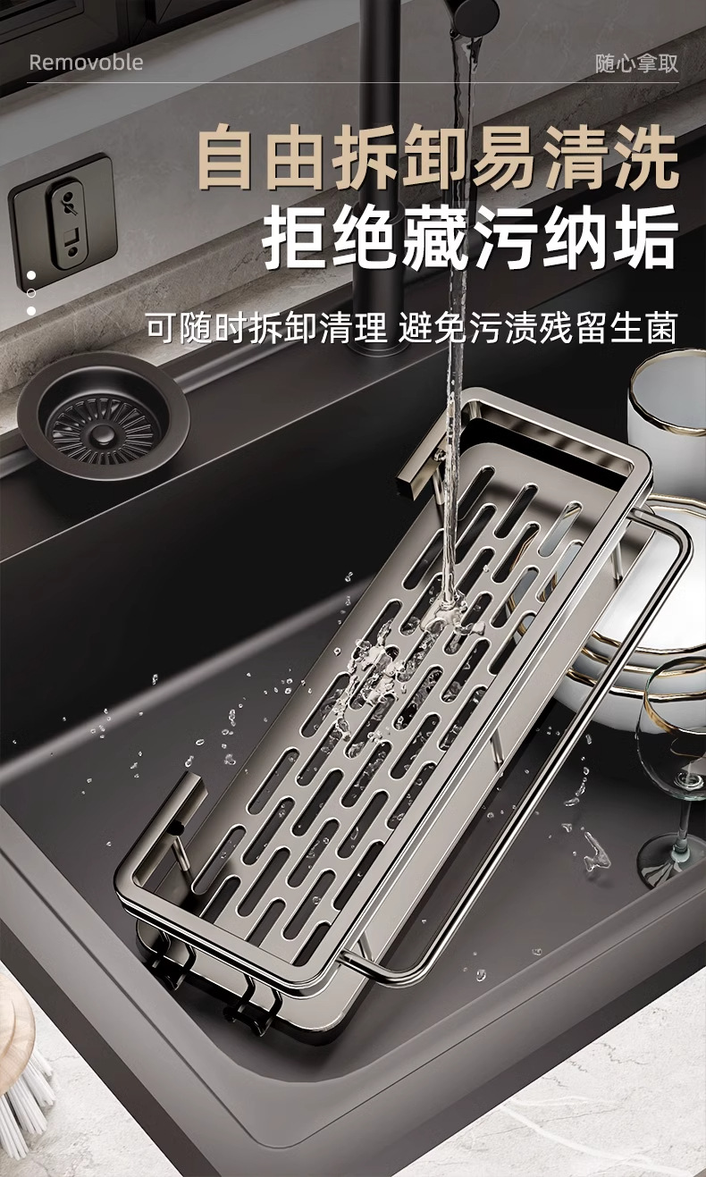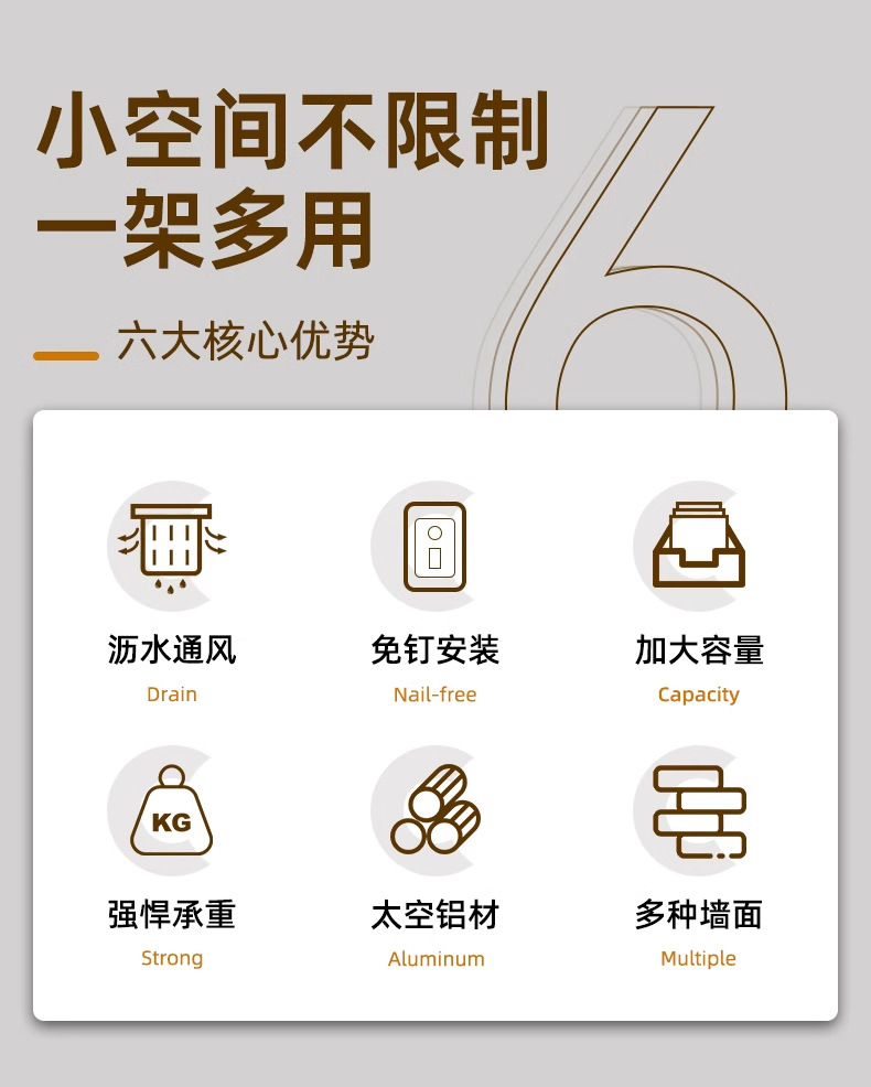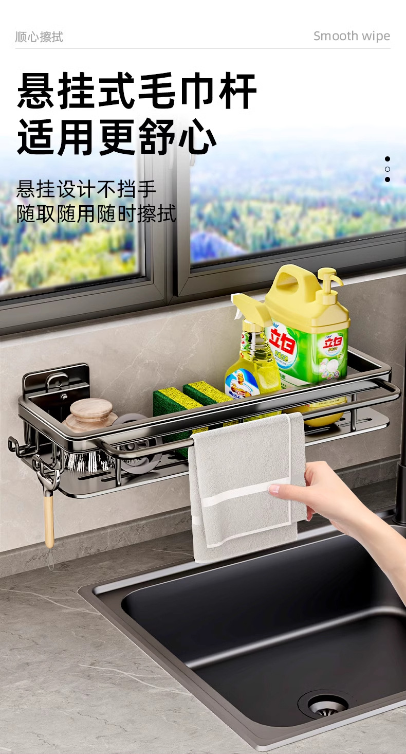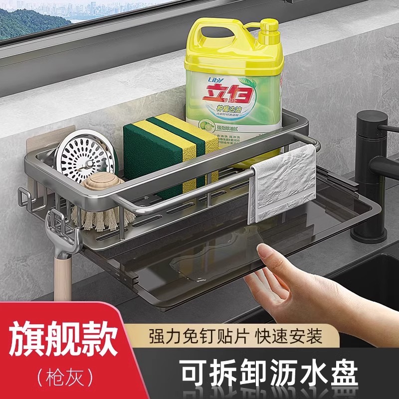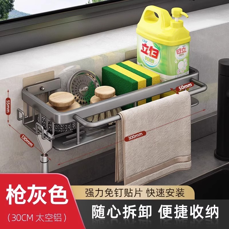 • [막대 및 후크 + 탈착식 물받이 포함] 업그레이드된 그레이(녹슬지 않는 공간 알루미늄)