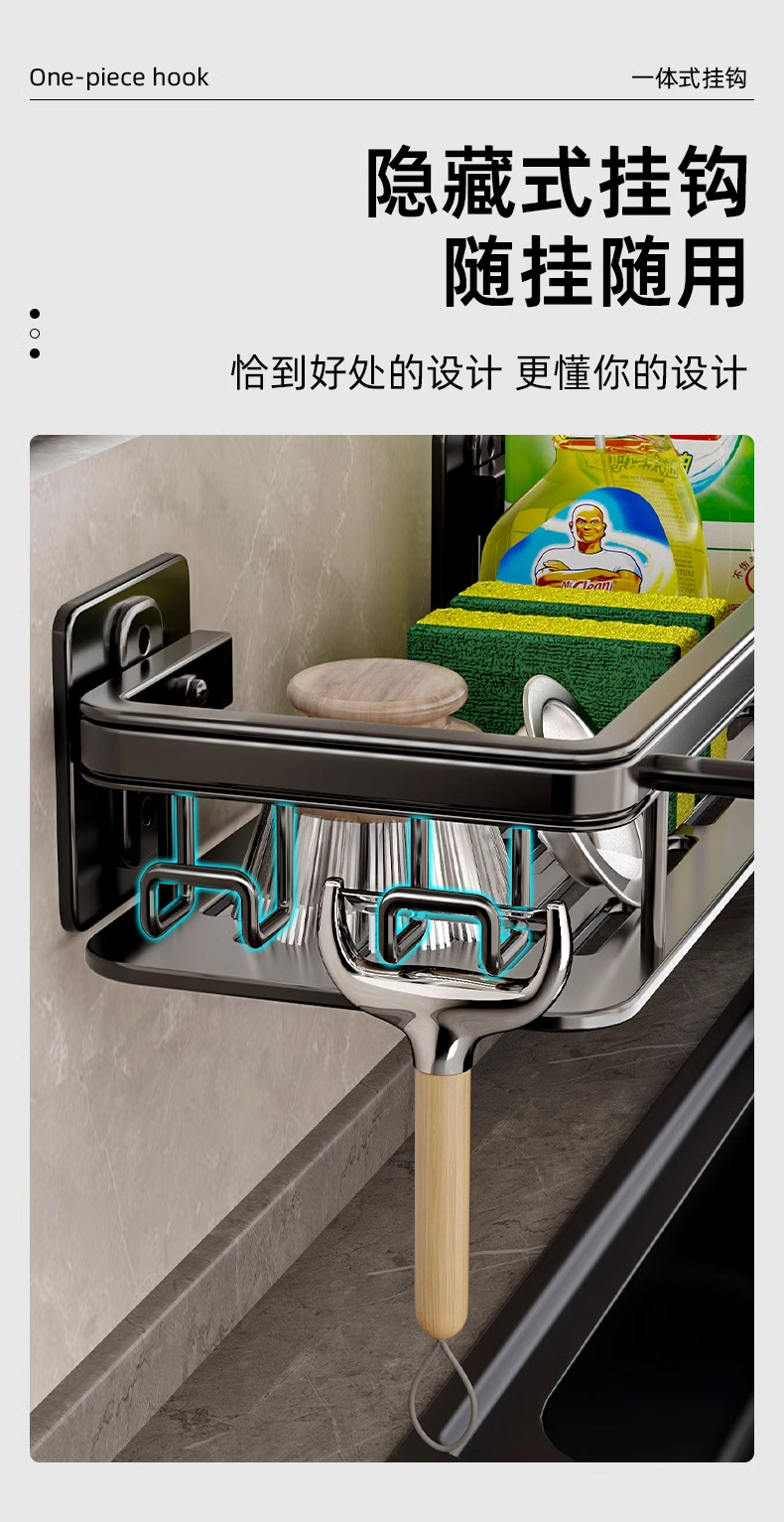 주방 랙 펀치 프리 스토리지 랙 벽걸이 가정용 서랍 스토리지 선반 싱크대 교수형 바구니 용품 인공물