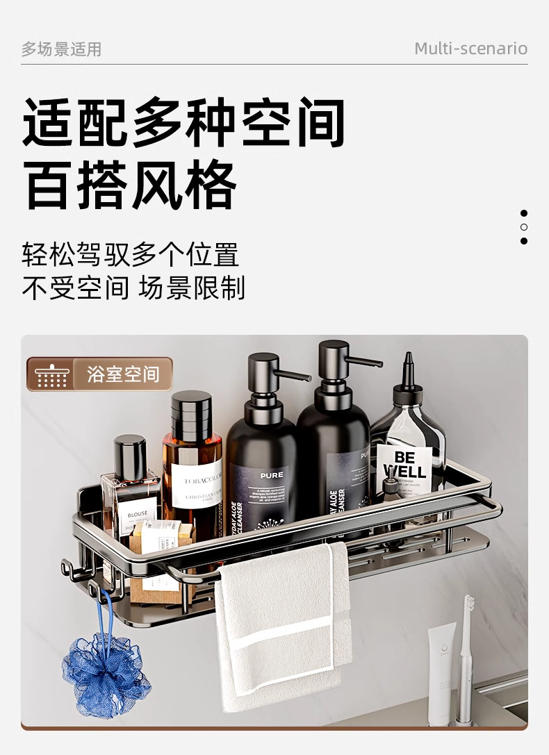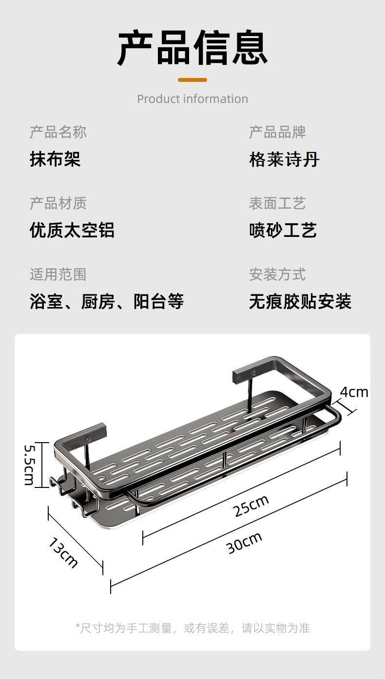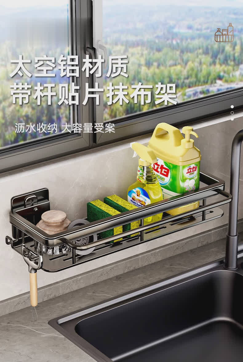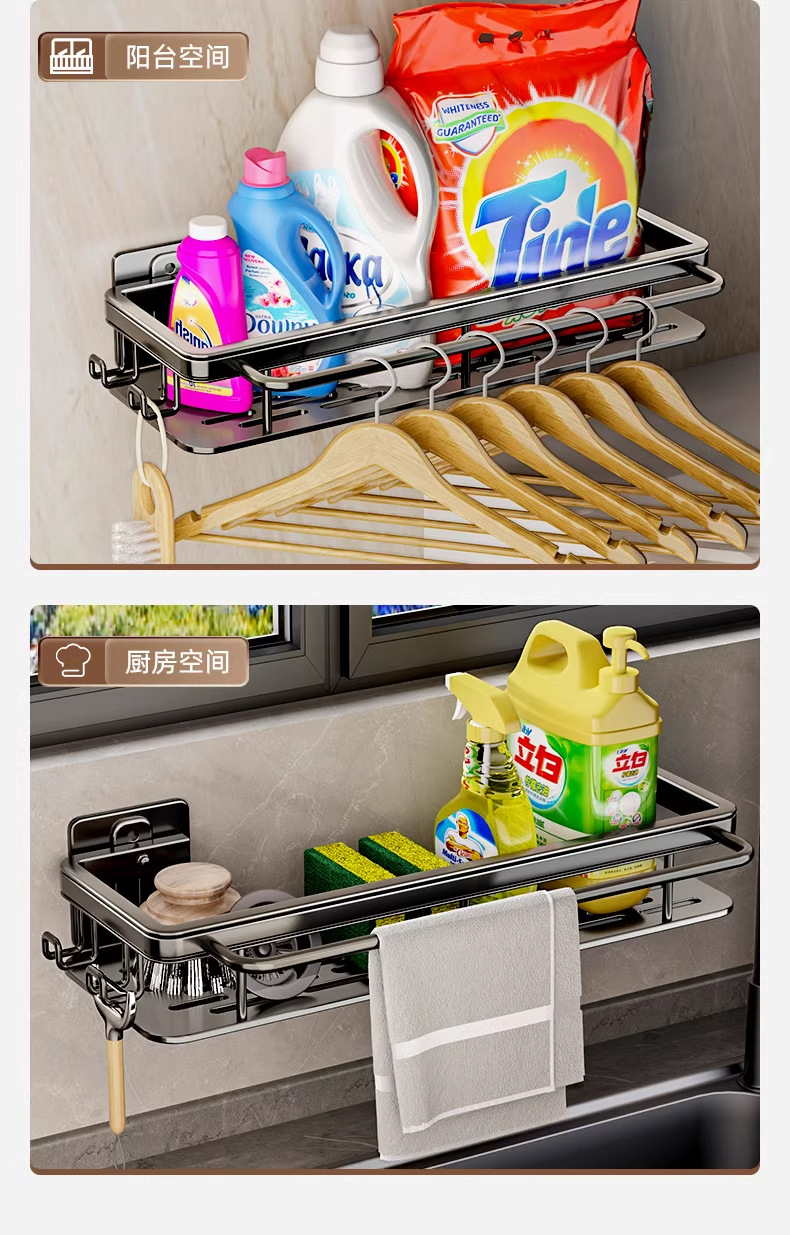 • [막대 및 후크 + 탈착식 물받이 포함] 업그레이드된 블랙(녹슬지 않는 공간 알루미늄)