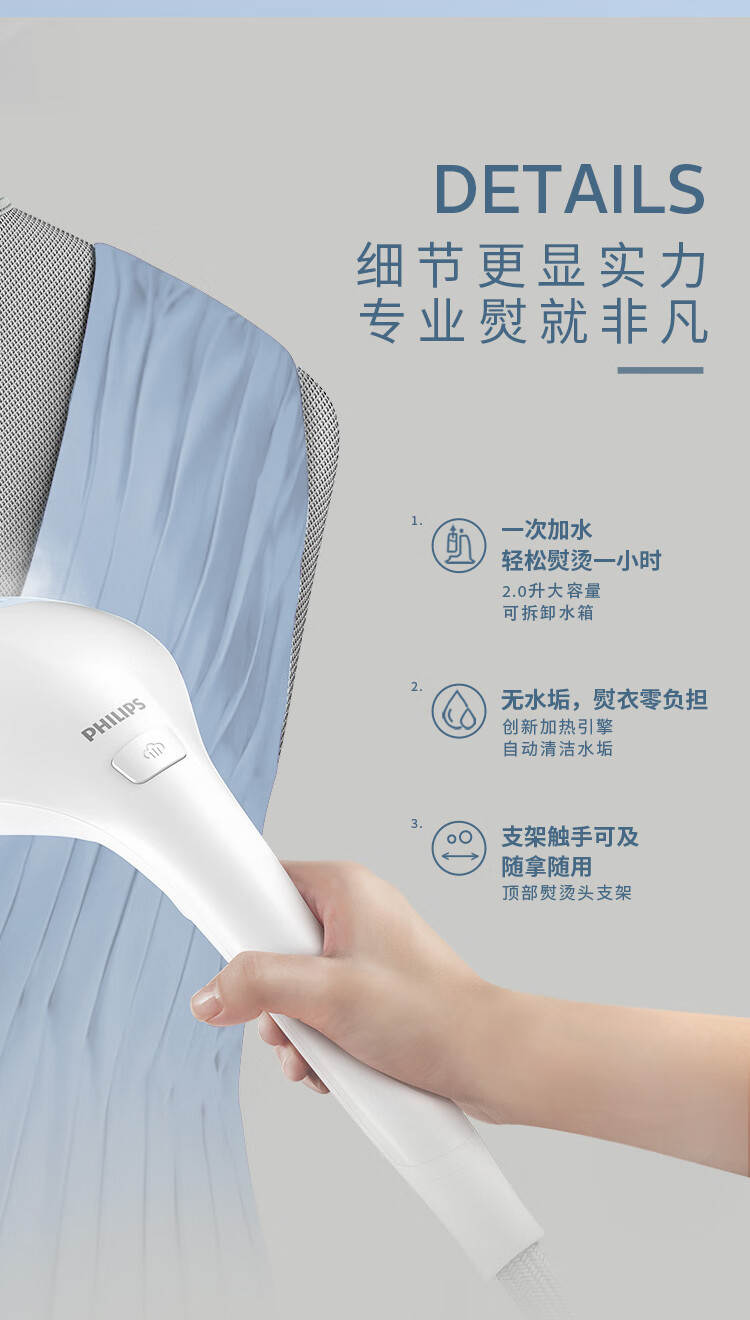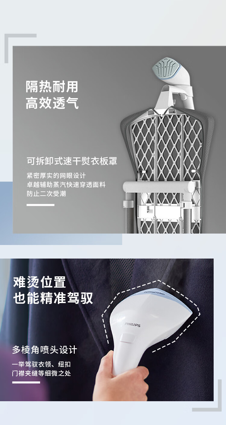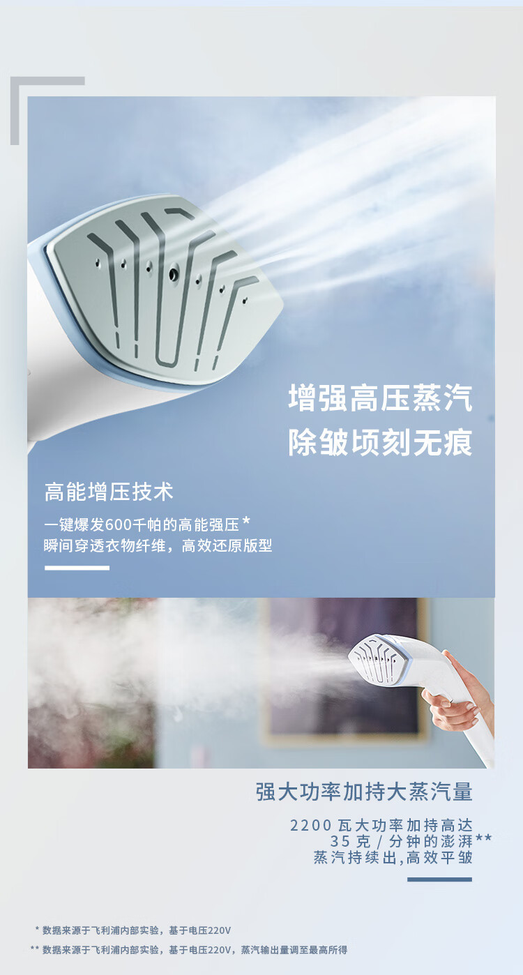 필립스 매달려 다림질 기계 GC625 가압 증기 다림질 기계 가정용 살균 및 진드기 제거 더블 로드 수직 지능형 온도 제어스토어 가기