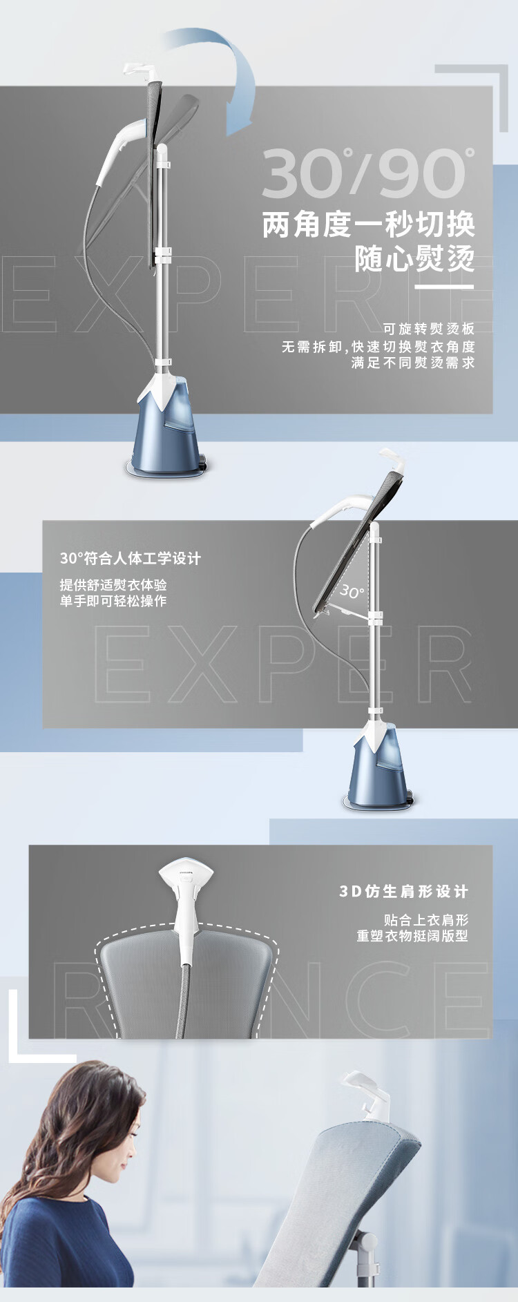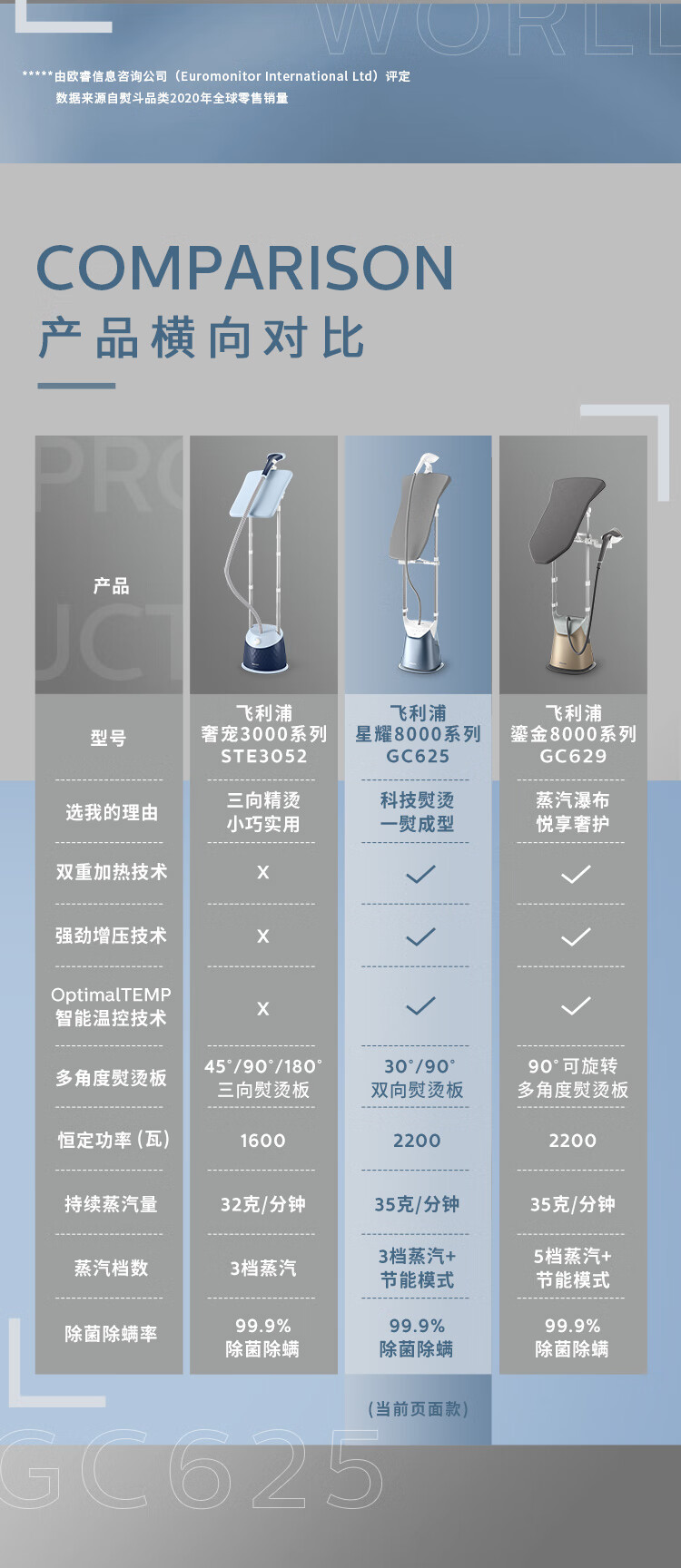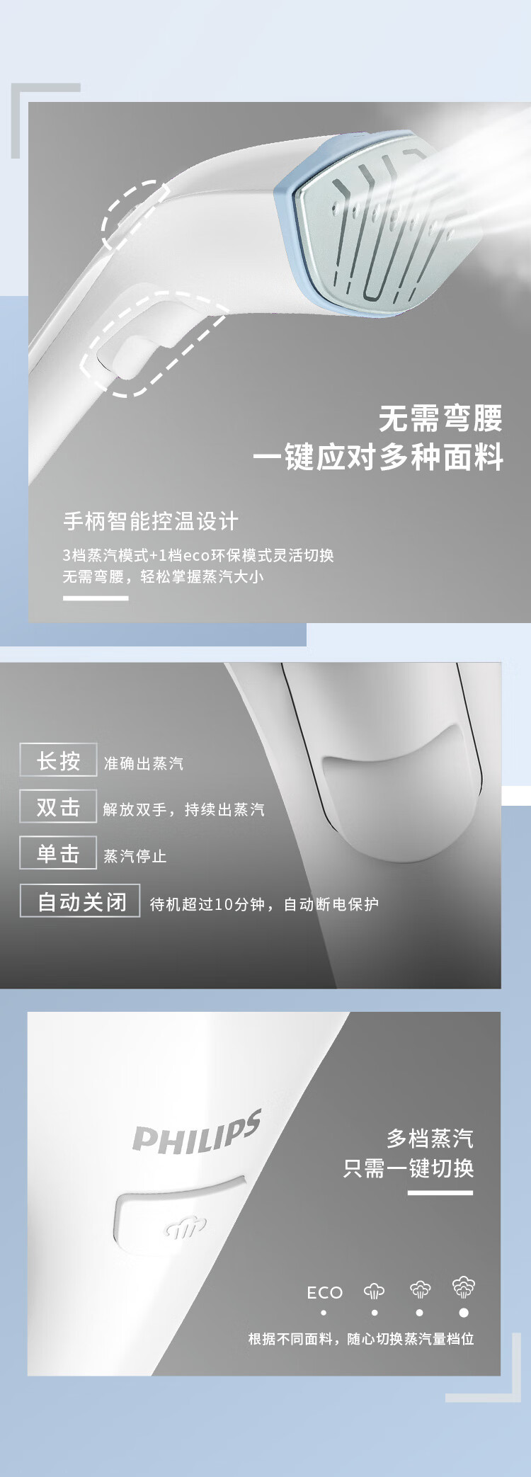 필립스 매달려 다림질 기계 GC625 가압 증기 다림질 기계 가정용 살균 및 진드기 제거 더블 로드 수직 지능형 온도 제어스토어 가기