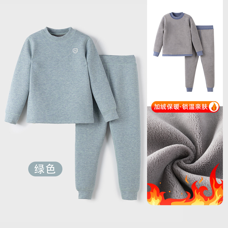 어린이 열 속옷 세트 가을 겨울 소년 기모 두꺼운 큰 어린이 벨벳 소녀베이스 겨울 가을 옷과 바지