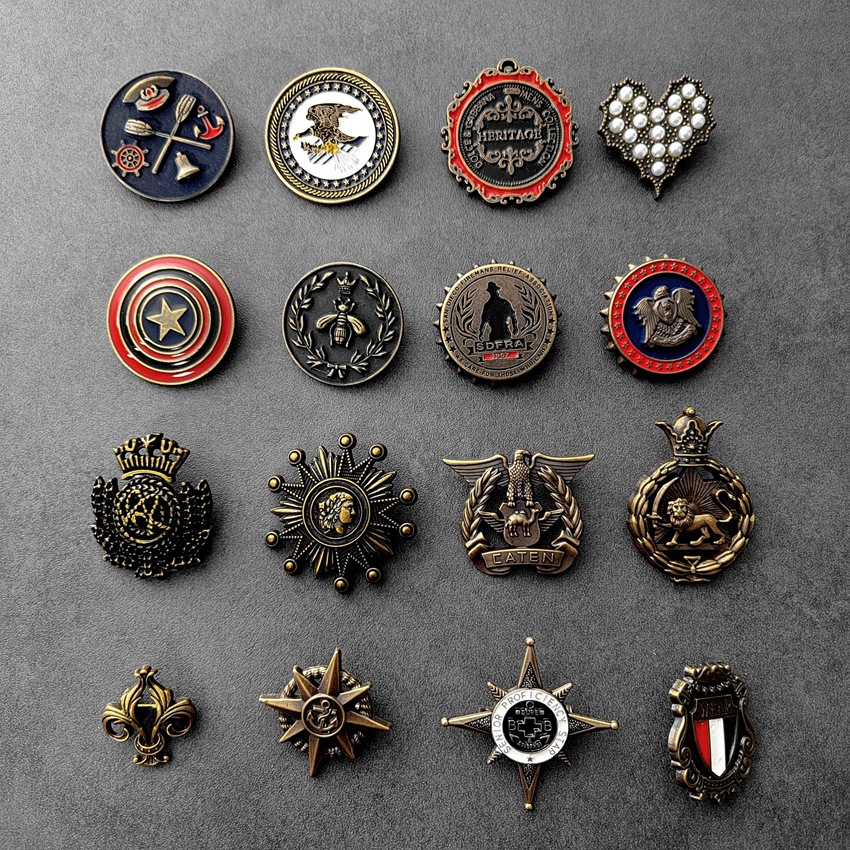 가을과 겨울 청동 배지 시리즈 유행 패션 캡 배지 메달 핀 한국식 향수 예술적 복고풍 핀